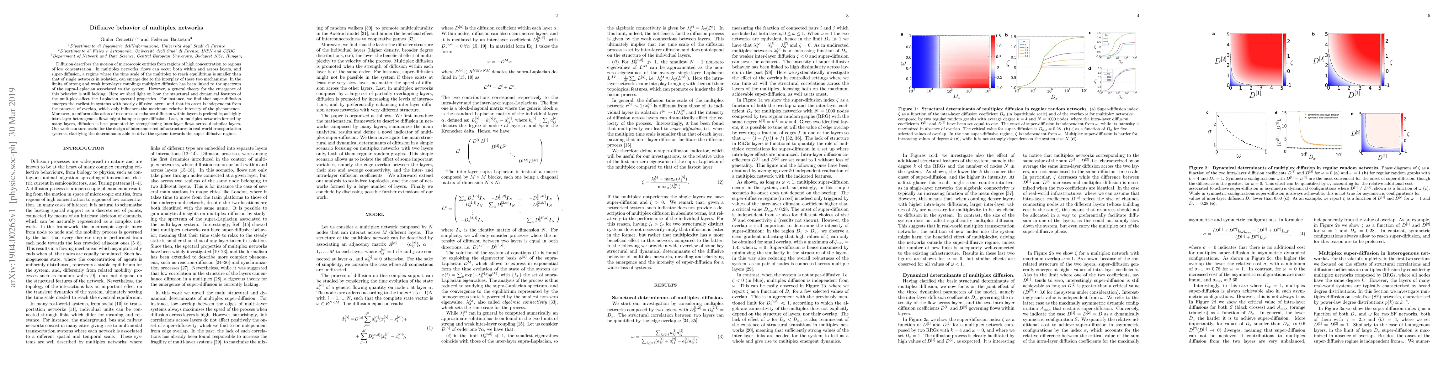 This paper investigates the diffusive behavior in multiplex networks, revealing that super-diffusion—a faster equilibrium state compared to single networks—emerges in systems with poorly diffusive layers and is enhanced by uniform intra-layer resource allocation. It also finds that inter-layer flows across dissimilar layers promote diffusion in multi-layered networks.