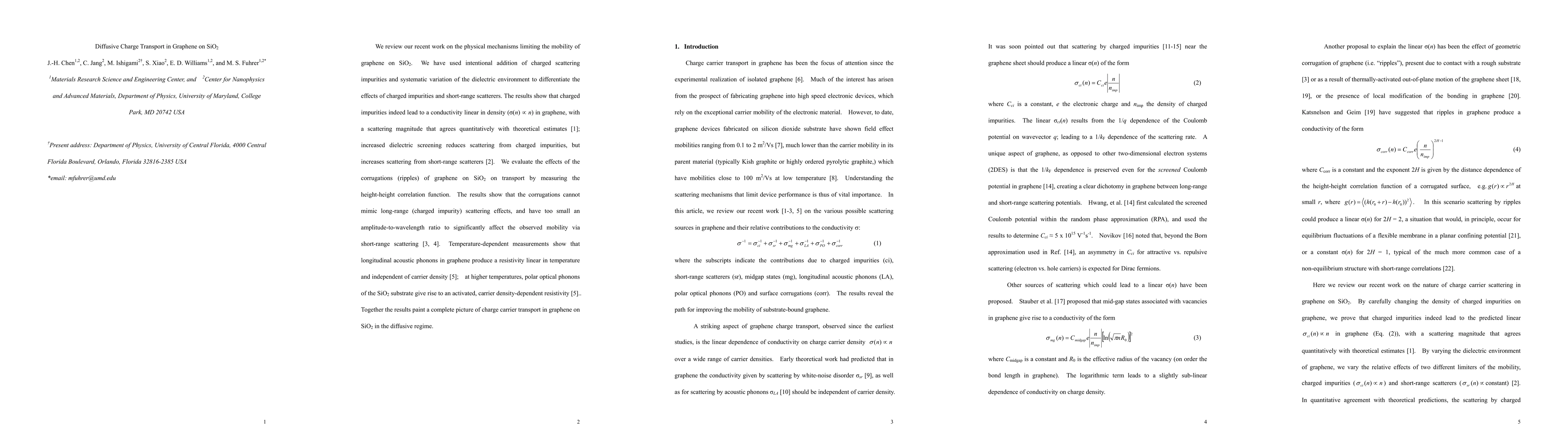 We review our recent work on the physical mechanisms limiting the mobility of graphene on SiO2. We have used intentional addition of charged scattering impurities and systematic variation of the dielectric environment to differentiate the effects of charged impurities and short-range scatterers. The results show that charged impurities indeed lead to a conductivity linear in density in graphene, with a scattering magnitude that agrees quantitatively with theoretical estimates [1]; increased dielectric screening reduces scattering from charged impurities, but increases scattering from short-range scatterers [2]. We evaluate the effects of the corrugations (ripples) of graphene on SiO2 on transport by measuring the height-height correlation function. The results show that the corrugations cannot mimic long-range (charged impurity) scattering effects, and have too small an amplitude-to-wavelength ratio to significantly affect the observed mobility via short-range scattering [3, 4]. Temperature-dependent measurements show that longitudinal acoustic phonons in graphene produce a resistivity linear in temperature and independent of carrier density [5]; at higher temperatures, polar optical phonons of the SiO2 substrate give rise to an activated, carrier density-dependent resistivity [5]. Together the results paint a complete picture of charge carrier transport in graphene on SiO2 in the diffusive regime.