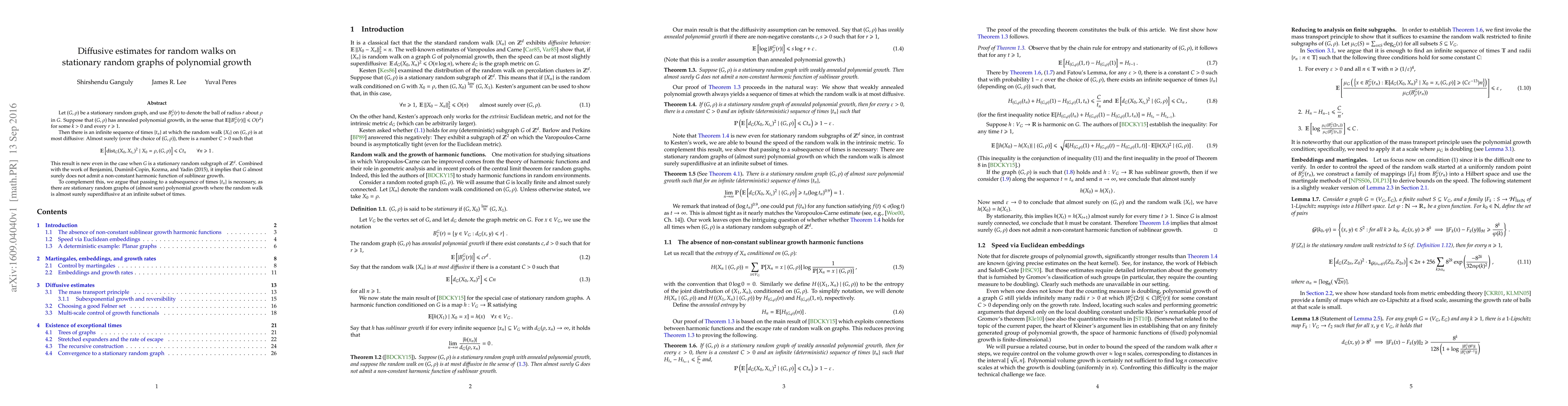 This research establishes that for stationary random graphs of polynomial growth, there exists an infinite sequence of times where a random walk is at most diffusive. This finding is significant even for random subgraphs of $mathbb{Z}^d$, and implies these graphs almost surely lack non-constant harmonic functions of sublinear growth. However, the study also shows that selecting a subsequence of times is necessary, as some stationary random graphs may exhibit superdiffusive random walks at an infinite set of times.