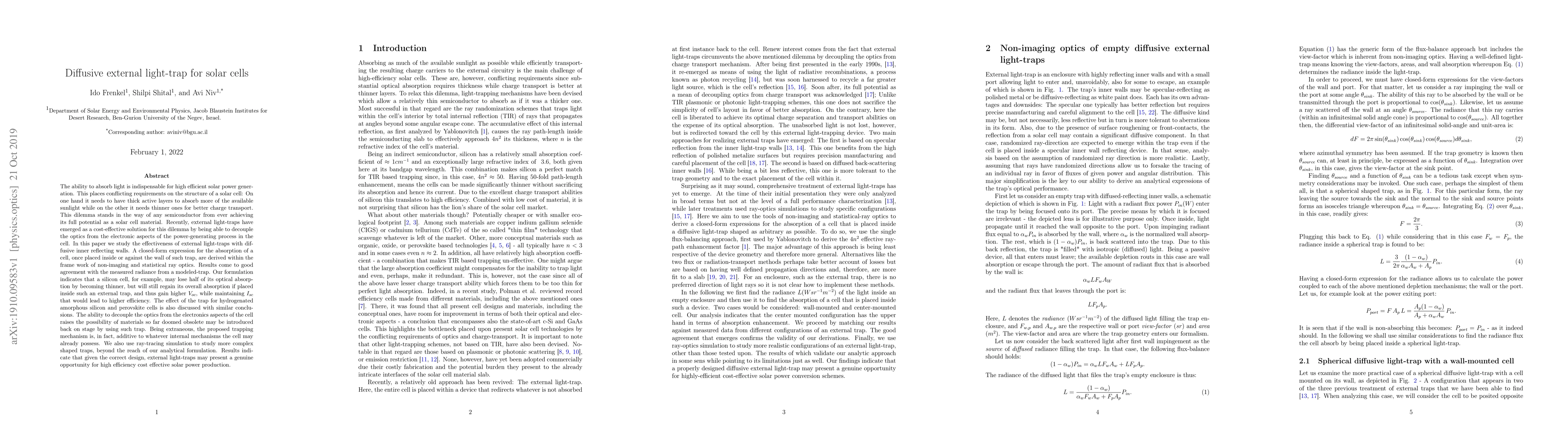 Researchers investigated external light-traps for solar cells, finding that well-designed diffusive inner reflecting walls can effectively increase efficiency and reduce costs. Their findings suggest a promising solution to the conflicting requirements of absorbing sunlight and transporting charges in solar cells.