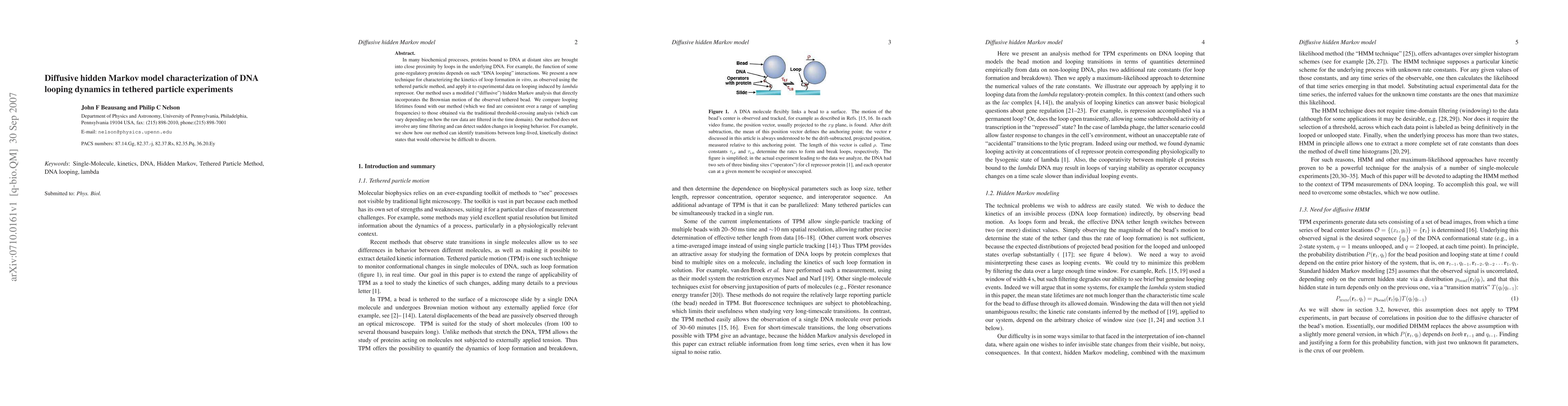 This paper introduces a diffusive hidden Markov model to analyze DNA looping kinetics in tethered particle experiments, incorporating Brownian motion for accurate loop lifetime determination. The method reveals kinetically distinct looping states, offering more consistent and detailed insights than traditional threshold-crossing analysis.