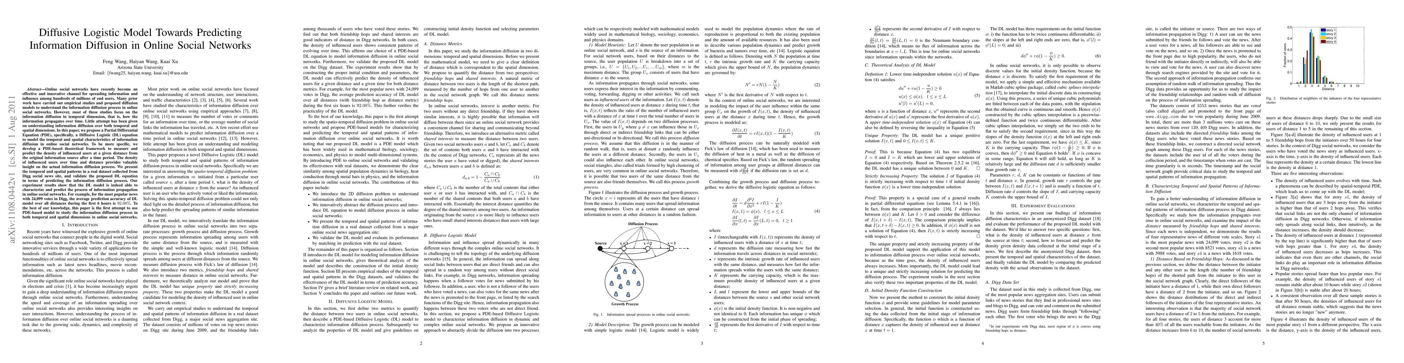 This paper proposes a Diffusive Logistic (DL) equation, a Partial Differential Equation (PDE) model to predict information diffusion in online social networks considering both temporal and spatial dimensions. Experimental results on a Digg dataset show the DL model's high accuracy (92.08% for popular news) in predicting diffusion patterns, marking the first PDE-based approach for this multidimensional analysis.