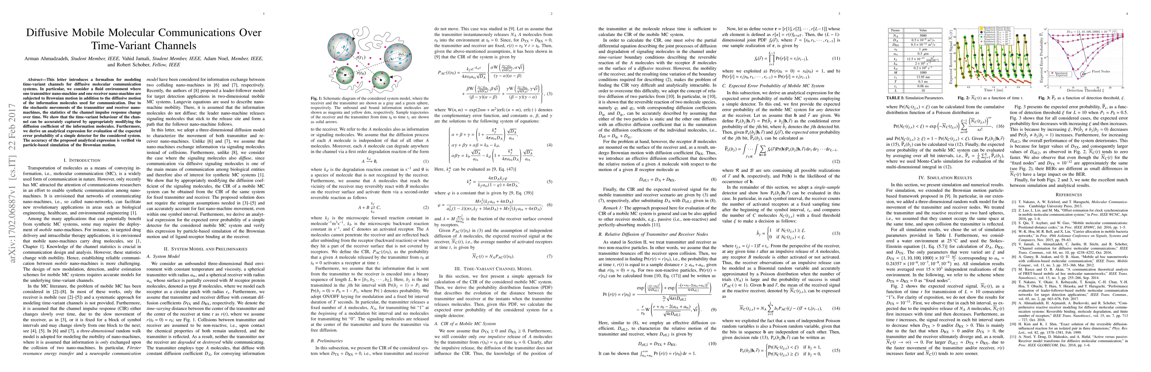 This paper presents a formalism for modeling time-variant channels in diffusive molecular communication systems, considering the Brownian motion of transmitter and receiver nano-machines. It proposes an analytical expression for evaluating the expected error probability, validated through particle-based simulations.