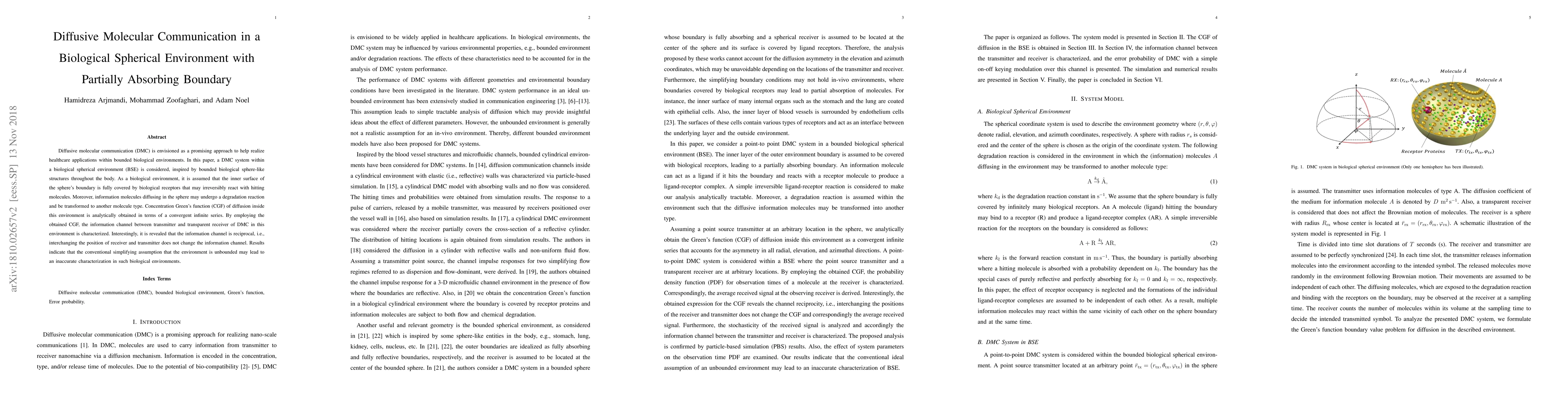 This paper investigates diffusive molecular communication in a spherical biological environment with a partially absorbing boundary. It analytically derives the concentration Green's function and characterizes the information channel, revealing a reciprocal nature and highlighting the limitations of assuming an unbounded environment.