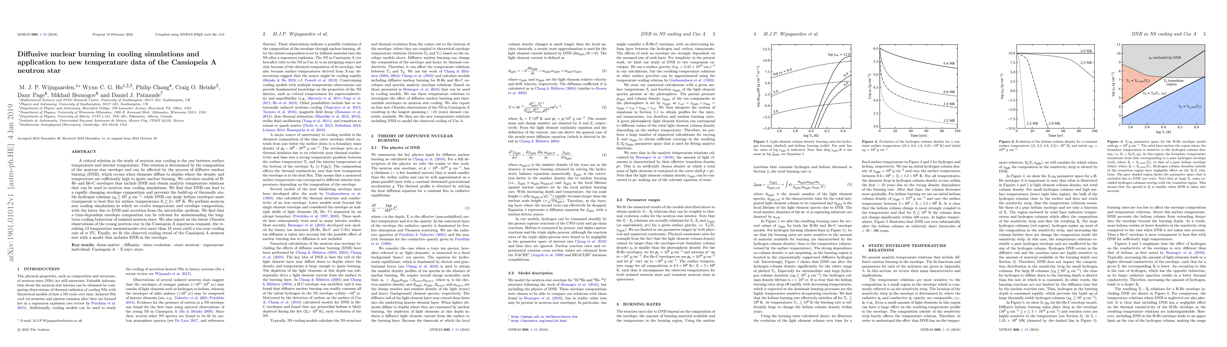 This paper investigates the impact of diffusive nuclear burning on neutron star cooling, finding that it alters the envelope composition and affects heat flux transparency. The study uses new temperature data from the Cassiopeia A neutron star to fit cooling models, revealing a time-dependent envelope composition that influences long-term cooling behavior.