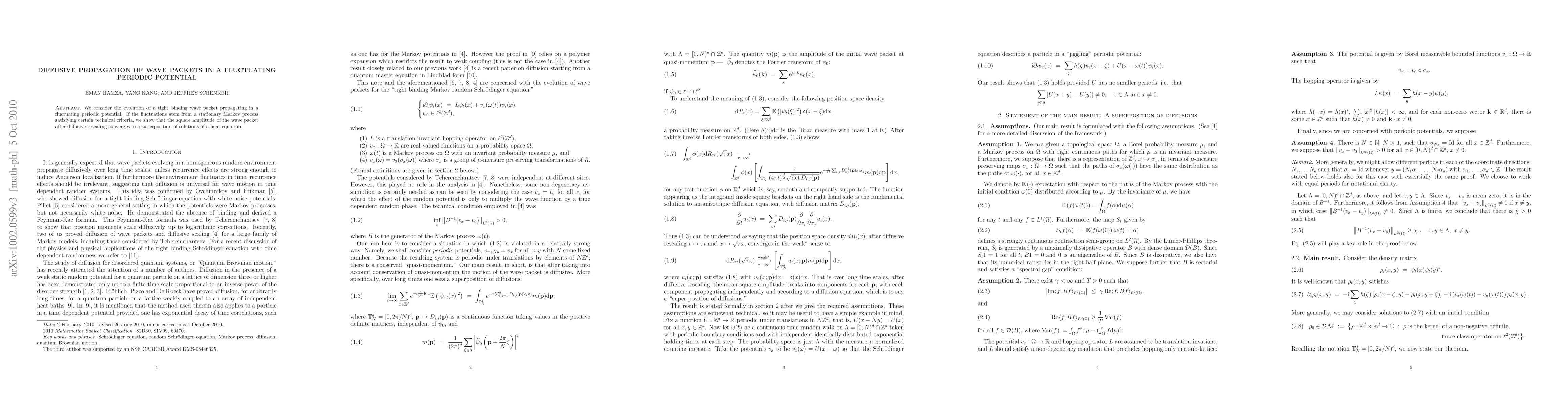 We consider the evolution of a tight binding wave packet propagating in a fluctuating periodic potential. If the fluctuations stem from a stationary Markov process satisfying certain technical criteria, we show that the square amplitude of the wave packet after diffusive rescaling converges to a superposition of solutions of a heat equation.