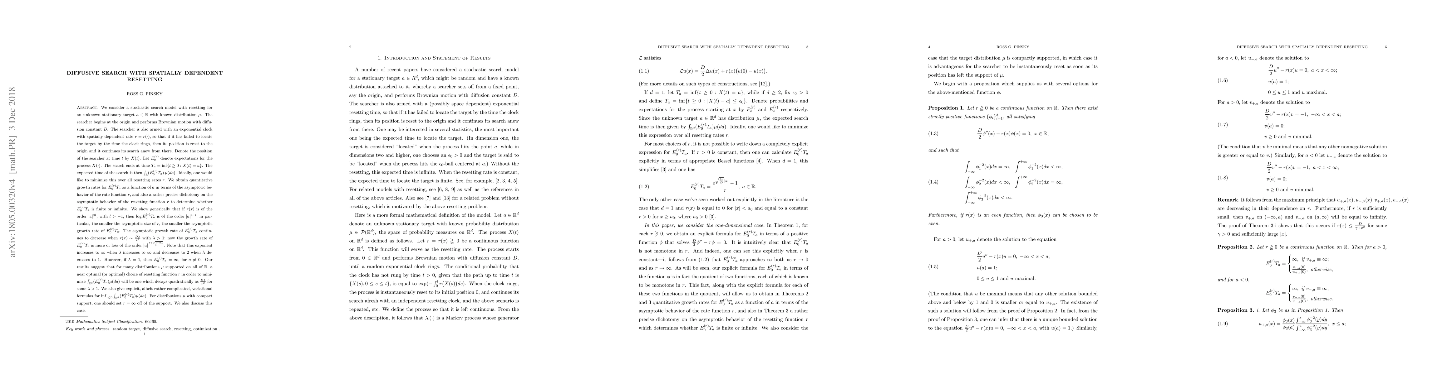 The paper presents a detailed mathematical analysis of diffusive search with spatially dependent resetting, providing growth rate conditions and a dichotomy for the finiteness of expected search times.