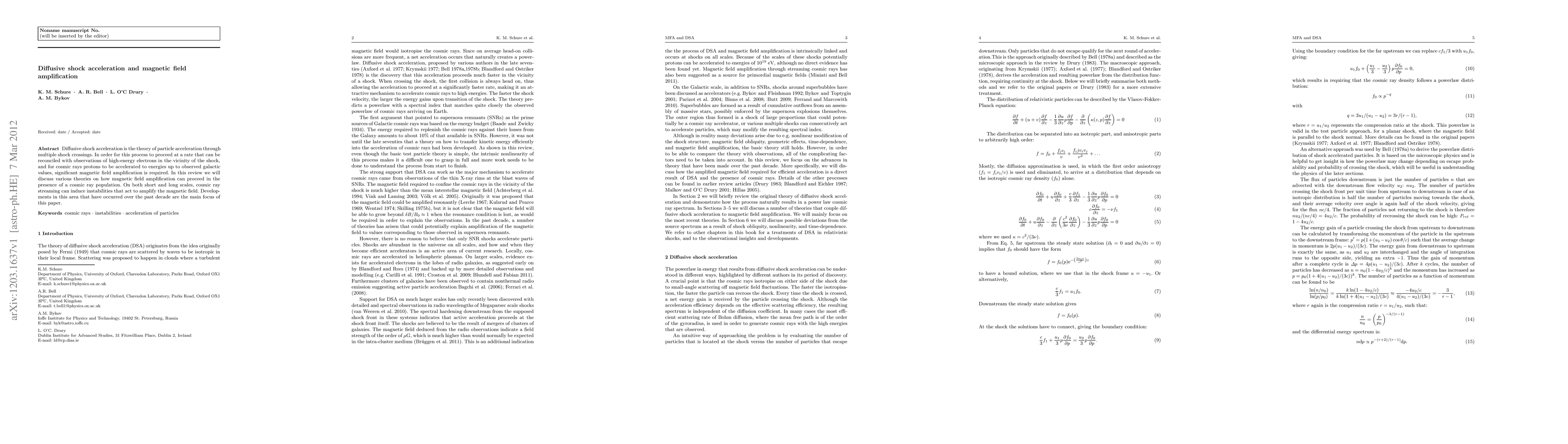 This paper reviews theories on diffusive shock acceleration and magnetic field amplification, emphasizing how cosmic ray streaming induces instabilities that amplify magnetic fields, crucial for reconciling observed high-energy particles with theoretical models. Recent advancements over the past decade are highlighted.
