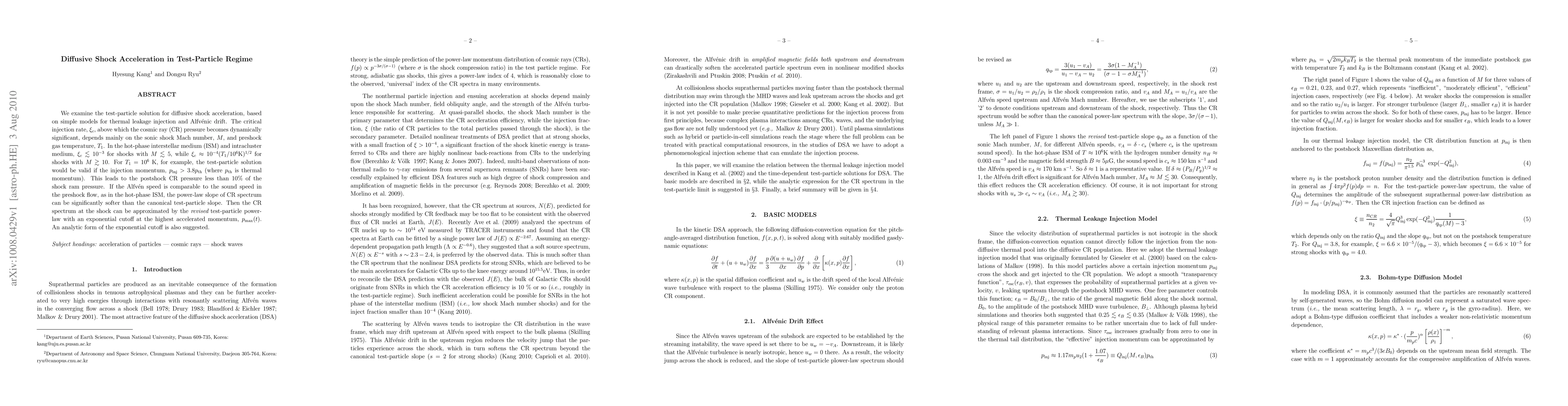 This paper explores the test-particle solution for diffusive shock acceleration, revealing that the critical injection rate for significant cosmic ray pressure depends mainly on shock Mach number and preshock gas temperature. The study suggests a revised test-particle power-law for cosmic ray spectra with an exponential cutoff, especially relevant in the hot-phase interstellar medium.