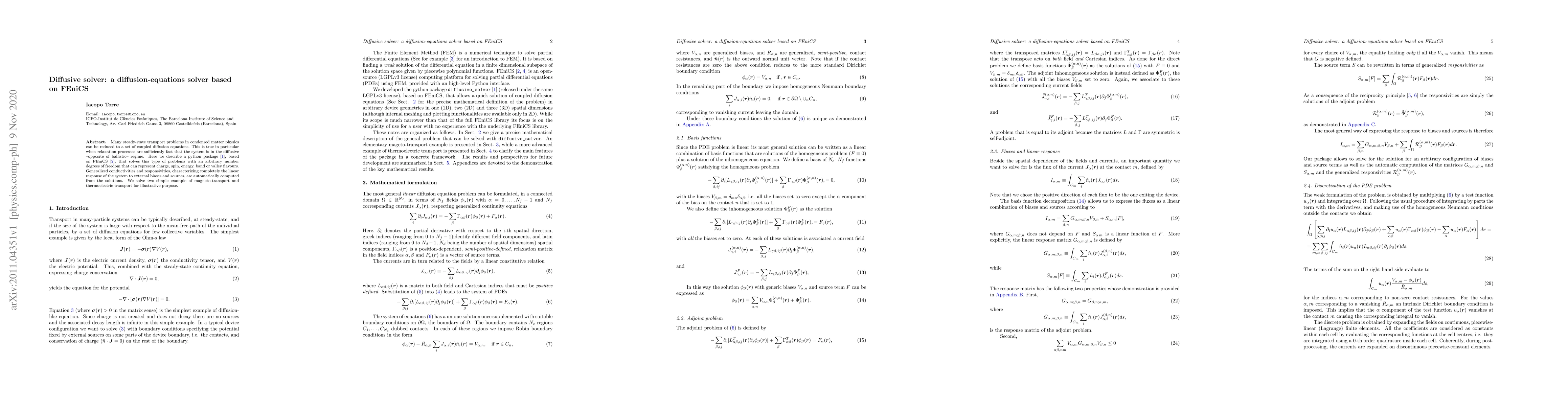 A Python package based on FEniCS is introduced to solve coupled diffusion equations in condensed matter physics, enabling the calculation of linear response to external biases and sources.