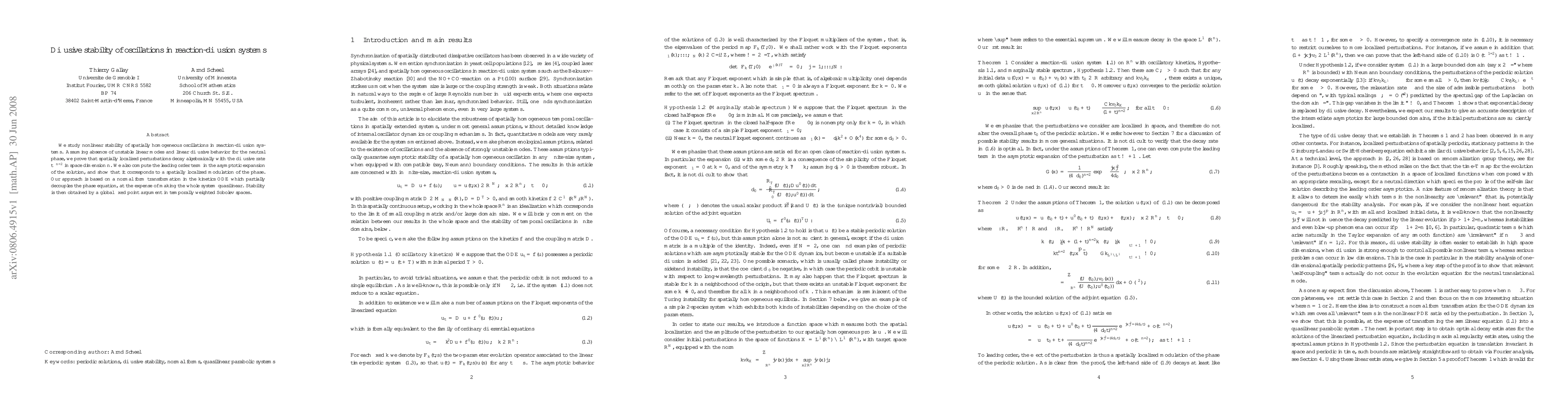 This paper investigates the nonlinear stability of oscillations in reaction-diffusion systems, demonstrating that spatially localized perturbations decay algebraically with time. The authors use a normal form transformation and a global fixed point argument to show stability in temporally weighted Sobolev spaces.