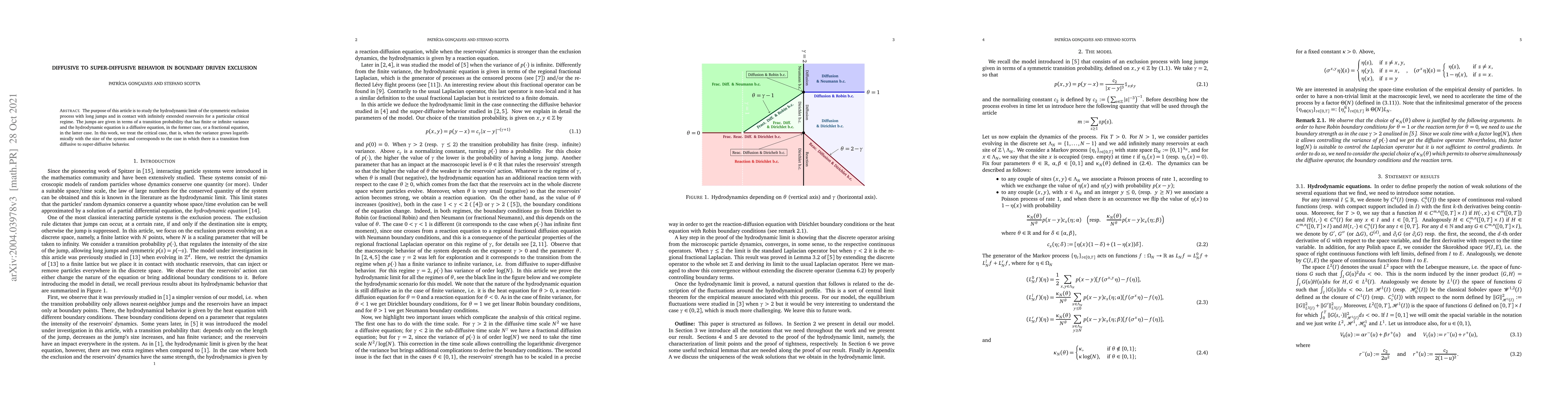 This paper investigates the hydrodynamic limit of a symmetric exclusion process with long jumps, focusing on a critical regime where the variance of jumps is infinite and grows logarithmically. It reveals a transition from diffusive to super-diffusive behavior in particle movement.
