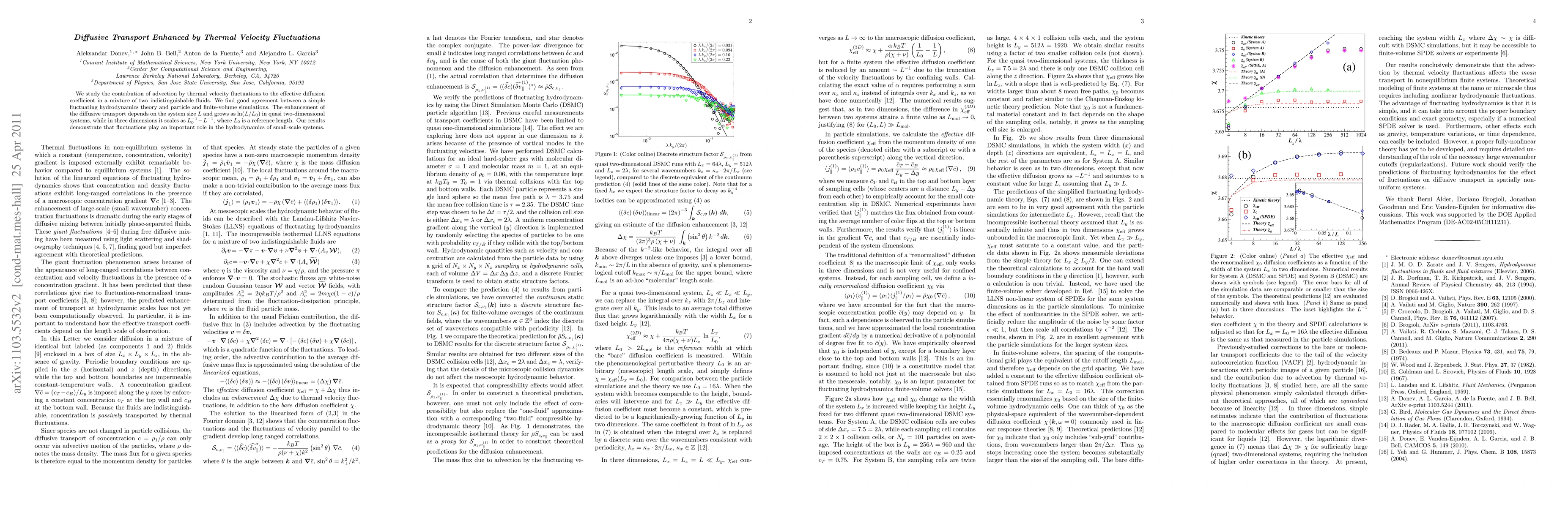 We study the contribution of advection by thermal velocity fluctuations to the effective diffusion coefficient in a mixture of two indistinguishable fluids. The enhancement of the diffusive transport depends on the system size L and grows as \ln(L/L_0) in quasi two-dimensional systems, while in three dimensions it scales as L_0^{-1}-L^{-1}, where L_0 is a reference length. The predictions of a simple fluctuating hydrodynamics theory are compared to results from particle simulations and a finite-volume solver and excellent agreement is observed. Our results conclusively demonstrate that the nonlinear advective terms need to be retained in the equations of fluctuating hydrodynamics when modeling transport in small-scale finite systems.
