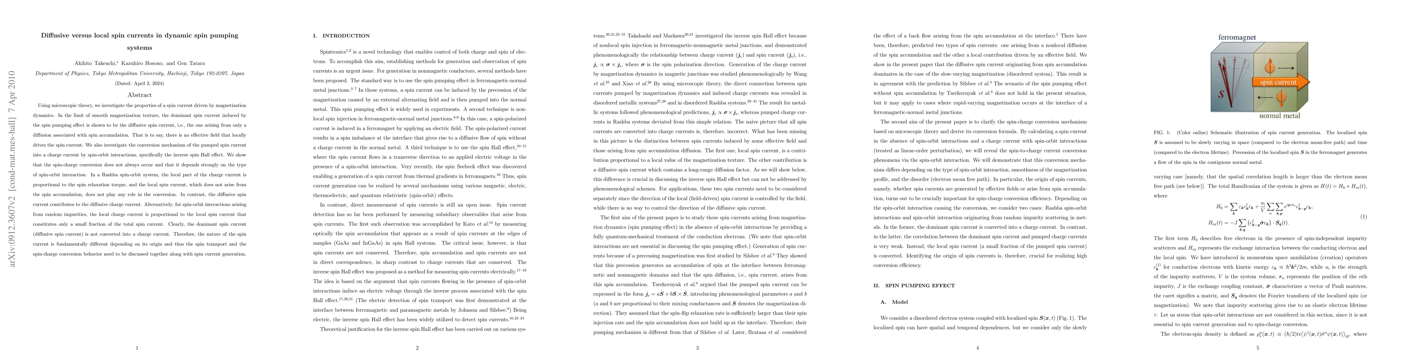 Researchers found that spin currents in dynamic systems can arise from diffusive spin accumulation rather than local spin pumping, with implications for charge conversion mechanisms and fundamental differences between different types of spin current.