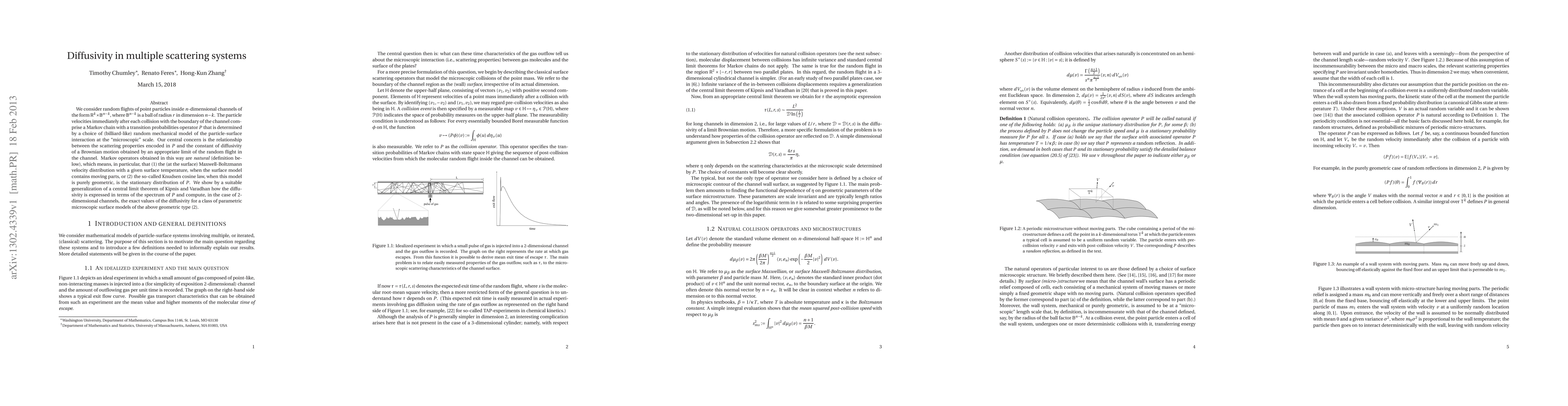 We consider random flights of point particles inside $n$-dimensional channels of the form $\mathbb{R}^{k} \times \mathbb{B}^{n-k}$, where $\mathbb{B}^{n-k}$ is a ball of radius $r$ in dimension $n-k$. The particle velocities immediately after each collision with the boundary of the channel comprise a Markov chain with a transition probabilities operator $P$ that is determined by a choice of (billiard-like) random mechanical model of the particle-surface interaction at the "microscopic" scale. Our central concern is the relationship between the scattering properties encoded in $P$ and the constant of diffusivity of a Brownian motion obtained by an appropriate limit of the random flight in the channel. Markov operators obtained in this way are {\em natural} (definition below), which means, in particular, that (1) the (at the surface) Maxwell-Boltzmann velocity distribution with a given surface temperature, when the surface model contains moving parts, or (2) the so-called Knudsen cosine law, when this model is purely geometric, is the stationary distribution of $P$. We show by a suitable generalization of a central limit theorem of Kipnis and Varadhan how the diffusivity is expressed in terms of the spectrum of $P$ and compute, in the case of 2-dimensional channels, the exact values of the diffusivity for a class of parametric microscopic surface models of the above geometric type (2).