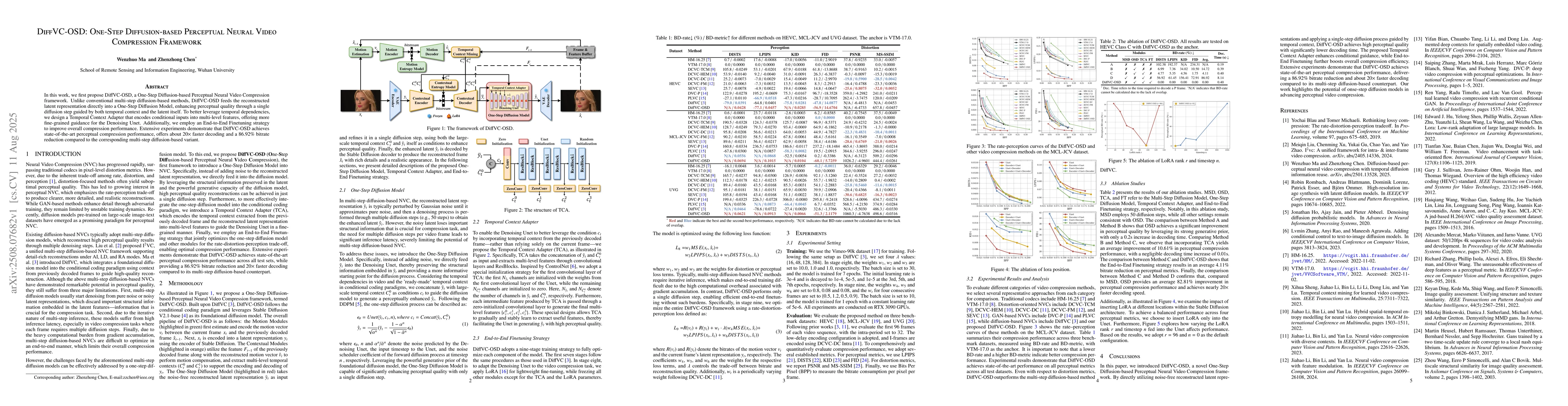 This research is significant as it introduces a novel, efficient video compression framework that leverages a single diffusion step, leading to faster decoding and superior perceptual quality. The method's potential impact lies in advancing perceptual video compression using on-step diffusion models.