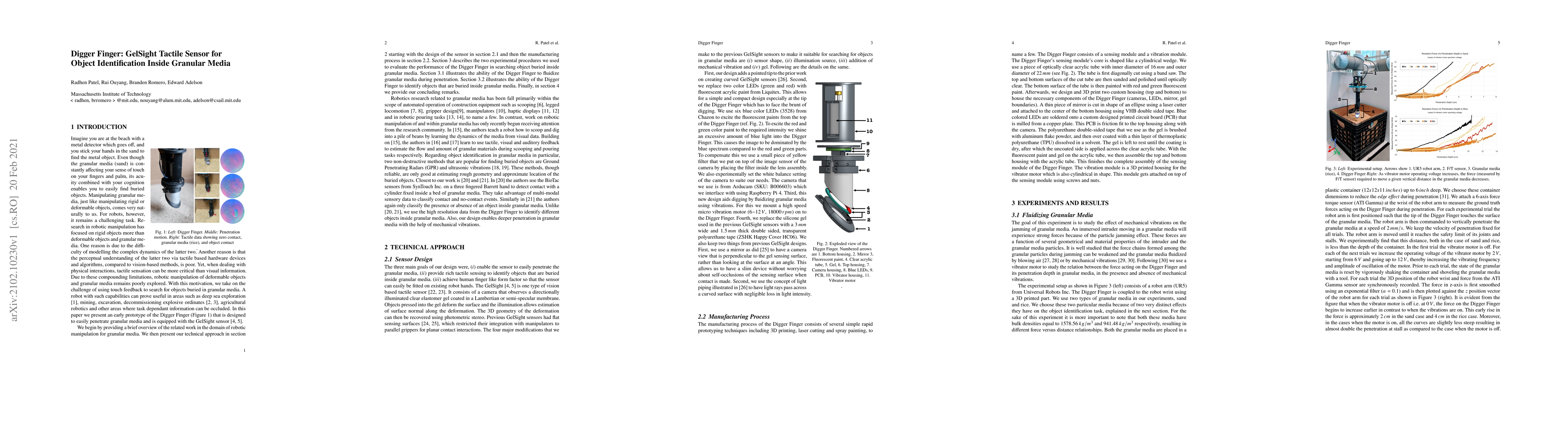 This paper introduces a Digger Finger prototype equipped with a GelSight sensor to identify objects buried in granular media by overcoming particle jamming and shape distortion challenges through mechanical vibrations and high-resolution tactile vision. The robot equipped with such sensors can perform tasks like explosive ordnance disposal with higher precision than traditional methods.