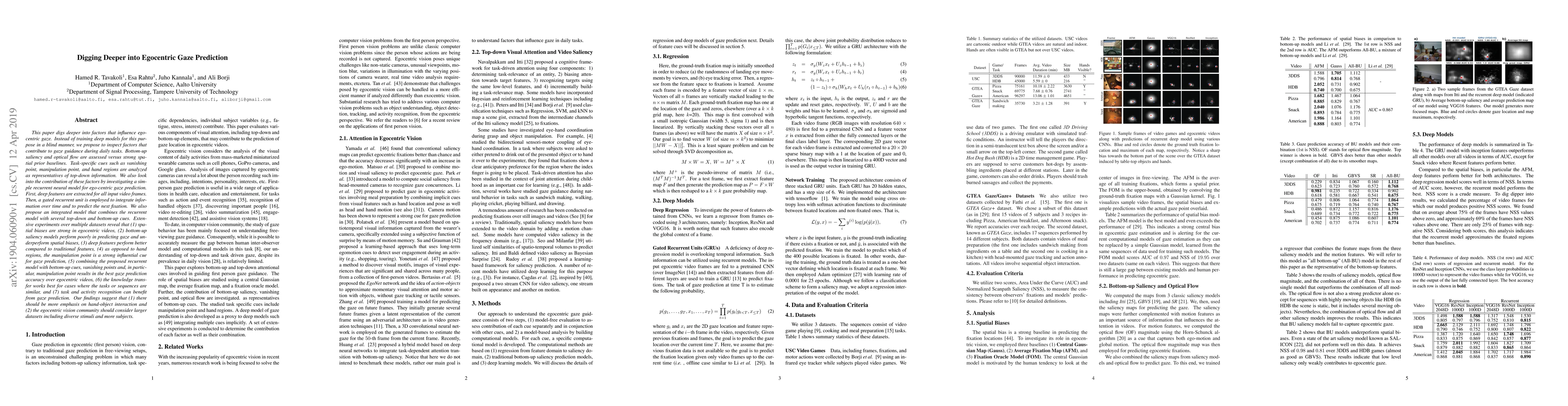 This paper investigates factors influencing egocentric gaze prediction, comparing bottom-up saliency and optical flow against spatial priors and analyzing task-specific cues like vanishing points and manipulation points. It proposes a recurrent neural model that integrates deep features over time to predict gaze, finding that manipulation points are more influential than hand regions and that combining this model with top-down cues yields the best prediction accuracy.