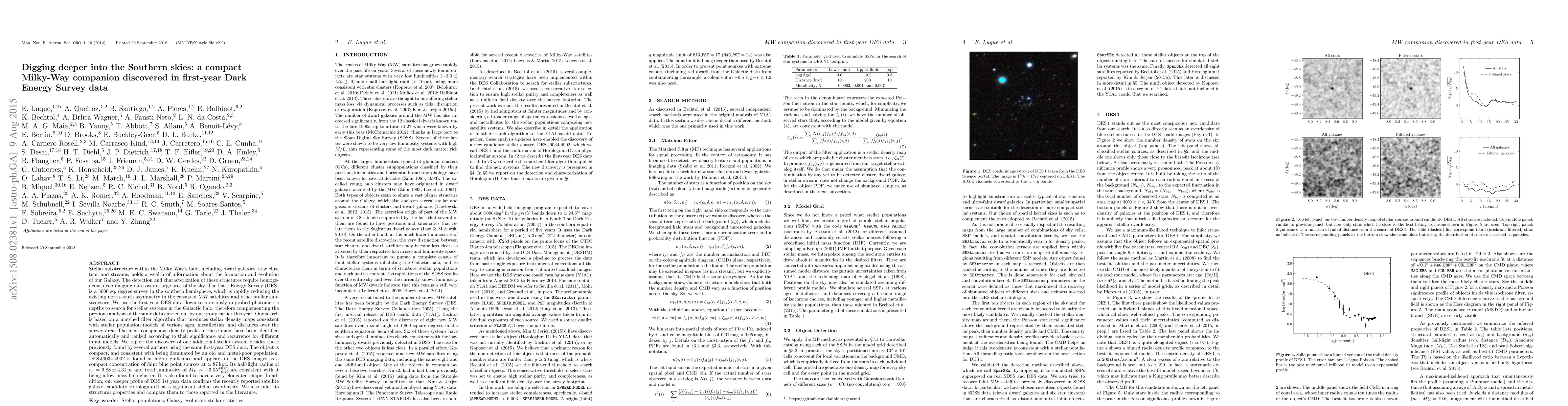 The Dark Energy Survey (DES) is a 5000 sq. degree survey in the southern hemisphere, which is rapidly reducing the existing north-south asymmetry in the census of MW satellites and other stellar substructure. We use the first-year DES data down to previously unprobed photometric depths to search for stellar systems in the Galactic halo, therefore complementing the previous analysis of the same data carried out by our group earlier this year. Our search is based on a matched filter algorithm that produces stellar density maps consistent with stellar population models of various ages, metallicities, and distances over the survey area. The most conspicuous density peaks in these maps have been identified automatically and ranked according to their significance and recurrence for different input models. We report the discovery of one additional stellar system besides those previously found by several authors using the same first-year DES data. The object is compact, and consistent with being dominated by an old and metal-poor population. DES J0034-4902 is found at high significance and appears in the DES images as a compact concentration of faint blue point sources at ~ 87 {kpc}. Its half-light radius of r_h = 9.88 +/- 4.31 {pc} and total luminosity of M_V ~ -3.05_{-0.42}^{+0.69} are consistent with it being a low mass halo cluster. It is also found to have a very elongated shape. In addition, our deeper probe of DES 1st year data confirms the recently reported satellite galaxy candidate Horologium II as a significant stellar overdensity. We also infer its structural properties and compare them to those reported in the literature.