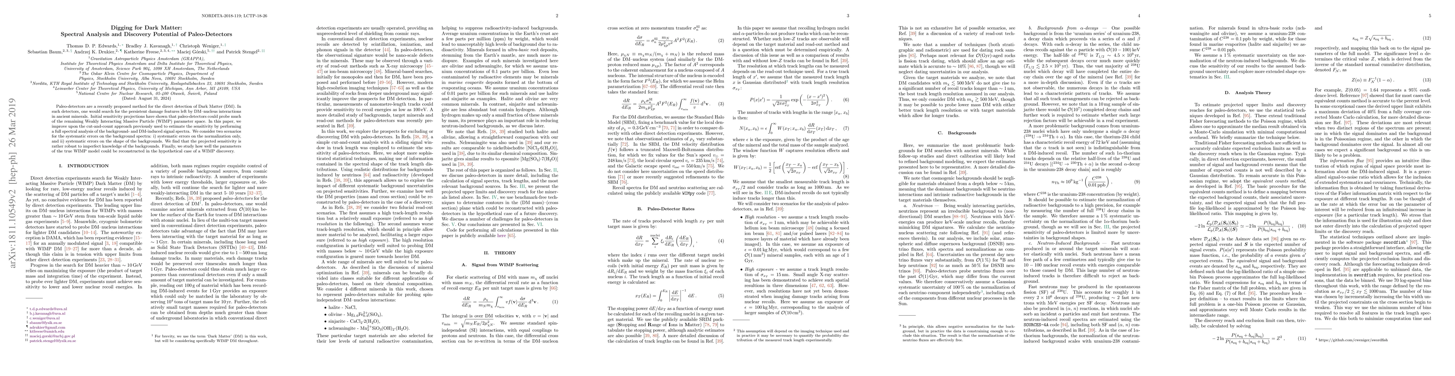 This paper enhances the sensitivity estimates for paleo-detectors, which aim to detect Dark Matter through persistent damage in ancient minerals, by performing a comprehensive spectral analysis. It finds that the detectors' sensitivity is robust to uncertainties in background spectra and explores the potential for reconstructing WIMP parameters in a discovery scenario.