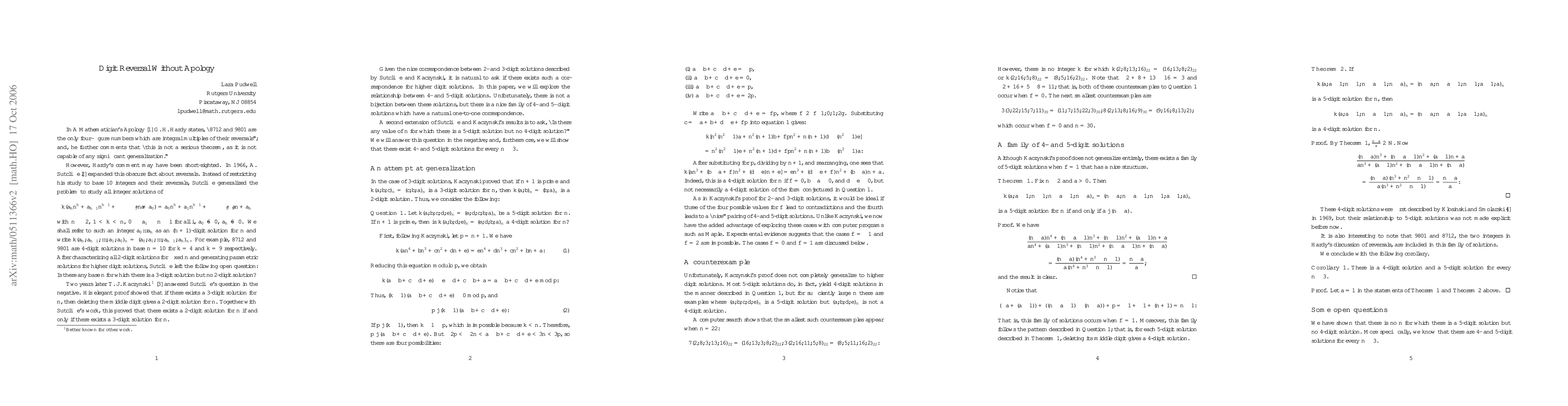This paper extends T.J. Kaczynski's 1968 proof to show that a base n number is divisible when its digits are reversed if and only if a 2-digit base n number has this property, with implications for numbers of up to 5 digits.