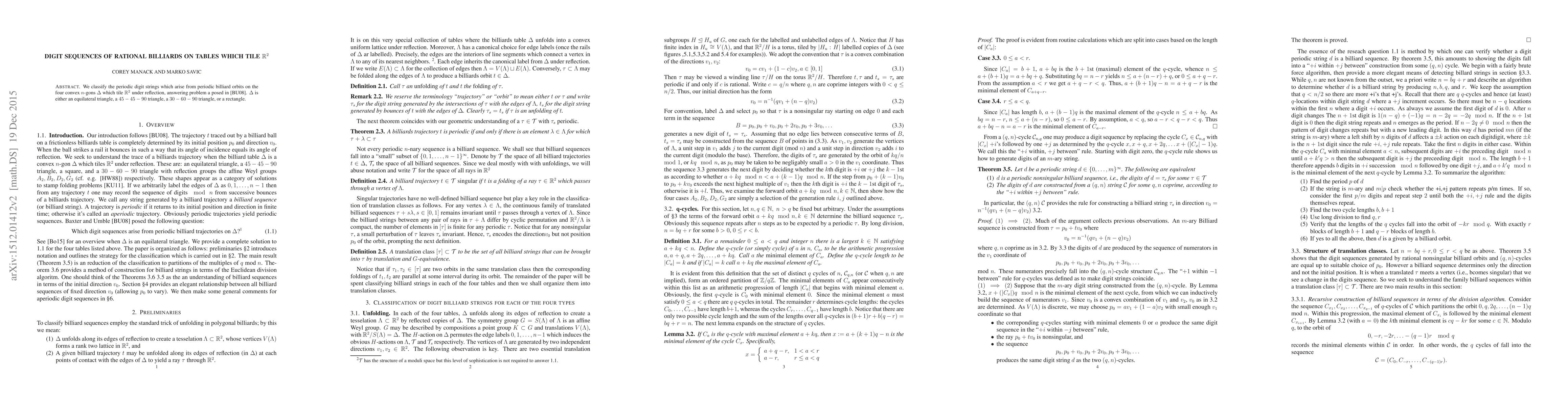 This paper classifies periodic digit sequences from rational billiard orbits on four convex $n$-gons that tile $\mathbb{R}^2$ by reflection, solving a problem posed by Baxter and Umble. The $n$-gons considered are equilateral triangles, $45-45-90$ triangles, $30-60-90$ triangles, and rectangles.
