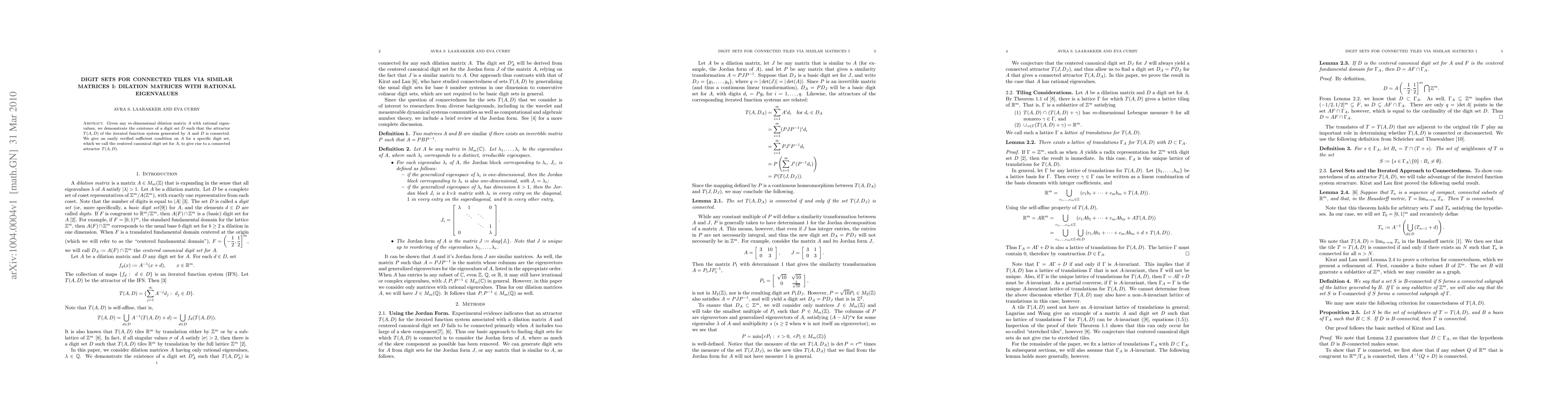 Given any m-dimensional dilation matrix A with rational eigenvalues, we demonstrate the existence of a digit set D such that the attractor T(A,D) of the iterated function system generated by A and D is connected. We give an easily verified sufficient condition on A for a specific digit set, which we call the centered canonical digit set for A, to give rise to a connected attractor T(A,D).