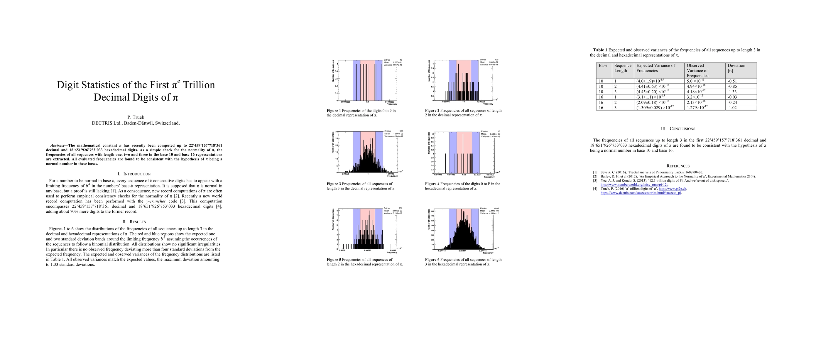 This study computes the first 22.4 trillion decimal digits of pi and analyzes the frequency of sequences of lengths one to three in both decimal and hexadecimal representations, finding no deviations from the expected frequencies, supporting the hypothesis of pi being a normal number.