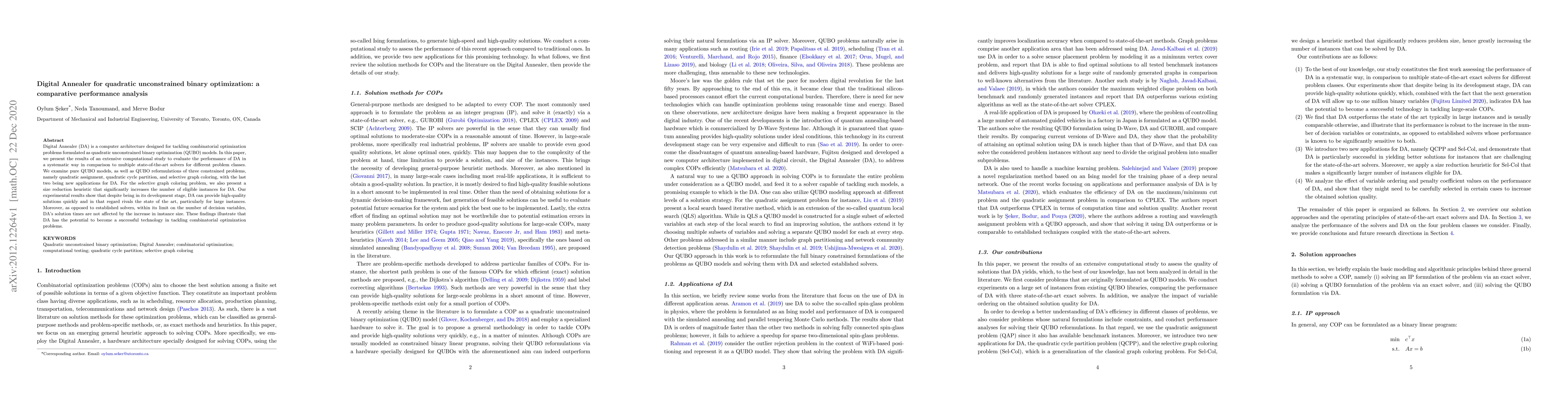 This research evaluates the performance of Digital Annealers (DA) in solving quadratic unconstrained binary optimization (QUBO) models compared to state-of-the-art solvers. Results indicate that despite its developmental stage, DA offers high-quality solutions rapidly and rivals established solvers, especially for large instances, with consistent performance irrespective of problem size.
