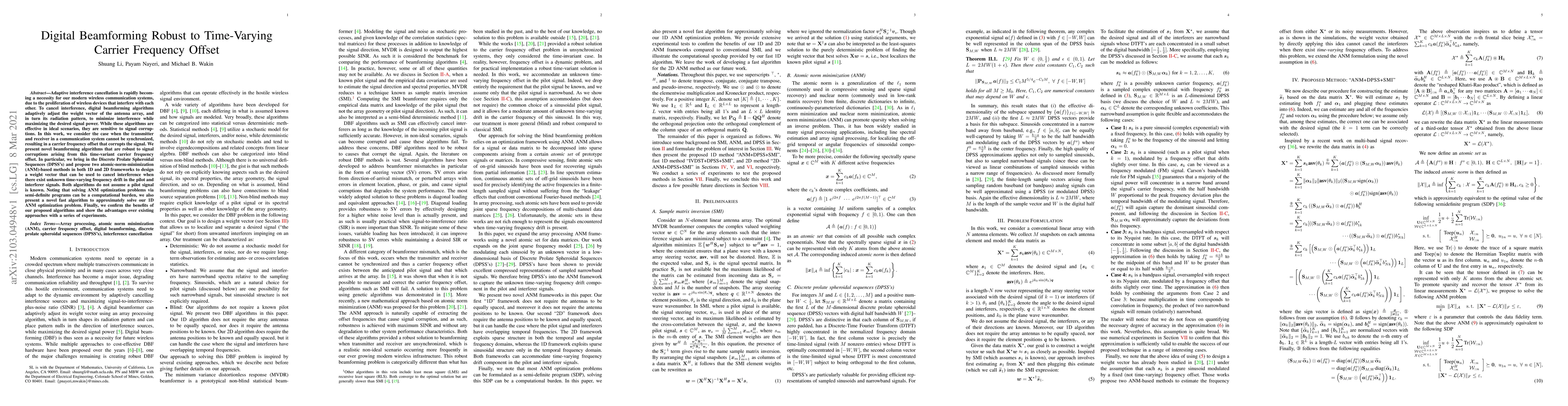 Researchers developed digital beamforming algorithms to improve wireless communication systems affected by time-varying carrier frequency offset, enhancing robustness against signal corruptions.