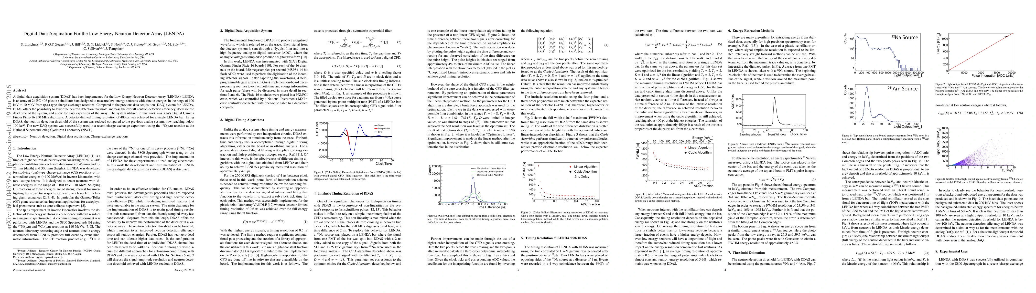 The paper describes the implementation of a digital data acquisition system (DDAS) for the Low Energy Neutron Detector Array (LENDA), which enhances detection efficiency and lowers the neutron detection threshold below 100 keV, achieving a timing resolution of 400 ps. The new system was successfully tested in a charge-exchange experiment at the NSCL.