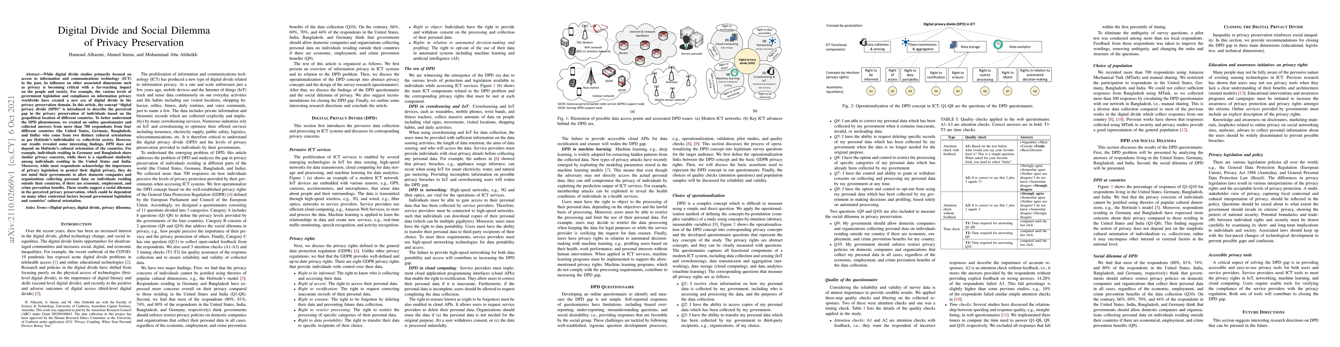 This paper introduces the concept of "digital privacy divide (DPD)" to describe the disparity in privacy preservation across different geopolitical locations. Through an online survey of over 700 respondents from the U.S., Germany, Bangladesh, and India, the study finds that DPD is not solely influenced by cultural orientation, revealing a complex social dilemma where respondents prioritize economic benefits over strict privacy preservation.