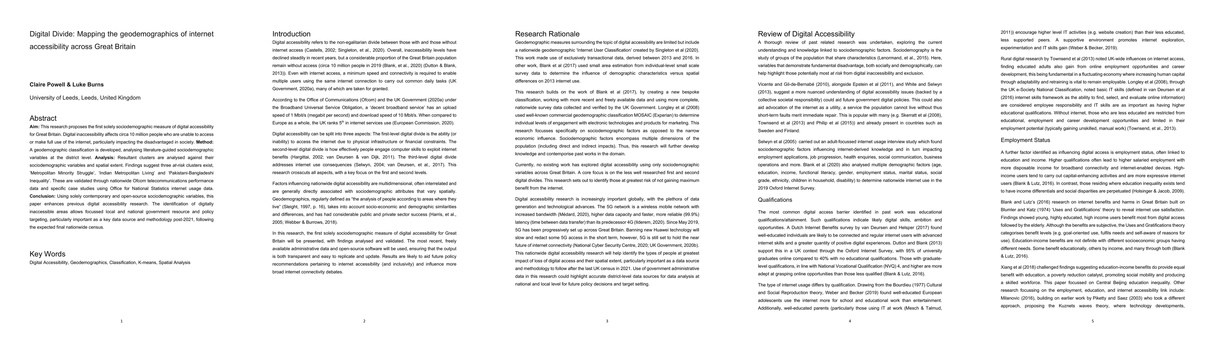This research identifies 3 digitally inaccessible clusters in Great Britain, using a novel geodemographic approach to map internet accessibility across the country. The findings highlight areas of high disadvantage and inform policy targeting for improved digital access.