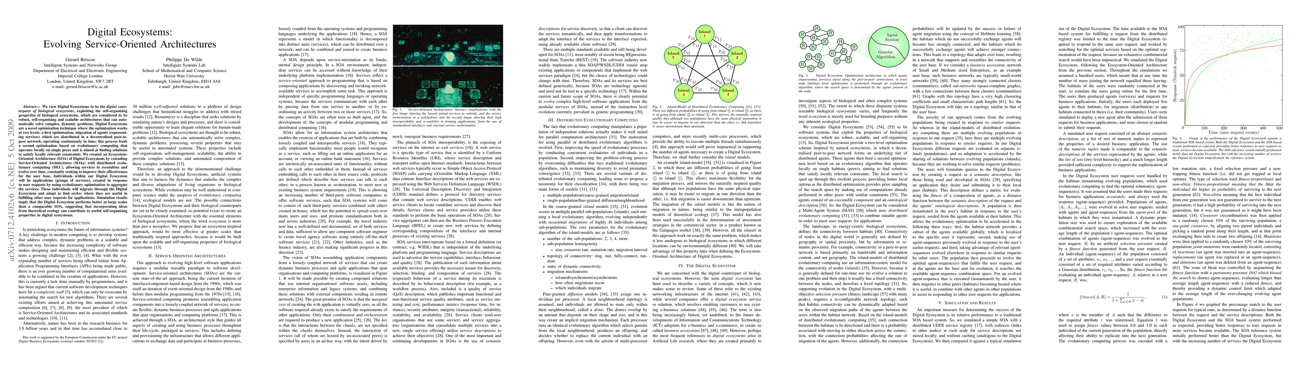 This paper proposes Digital Ecosystems as a novel optimization technique inspired by biological ecosystems, utilizing self-organizing properties for robust, scalable architectures. It employs a dual-level optimization process combining decentralized agent migration and local evolutionary computing to enhance service effectiveness.