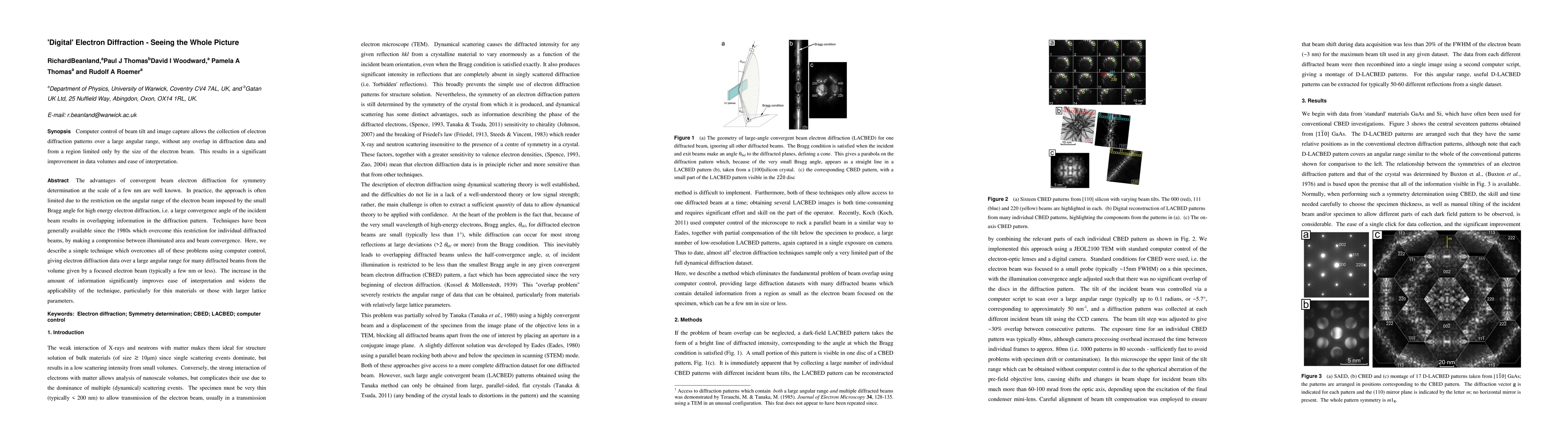This paper introduces a novel computer-controlled technique to enhance convergent beam electron diffraction, overcoming limitations on angular range and beam convergence, thereby providing comprehensive diffraction data over a large angular range for multiple diffracted beams, significantly improving the technique's applicability for thin materials and those with larger lattice parameters.