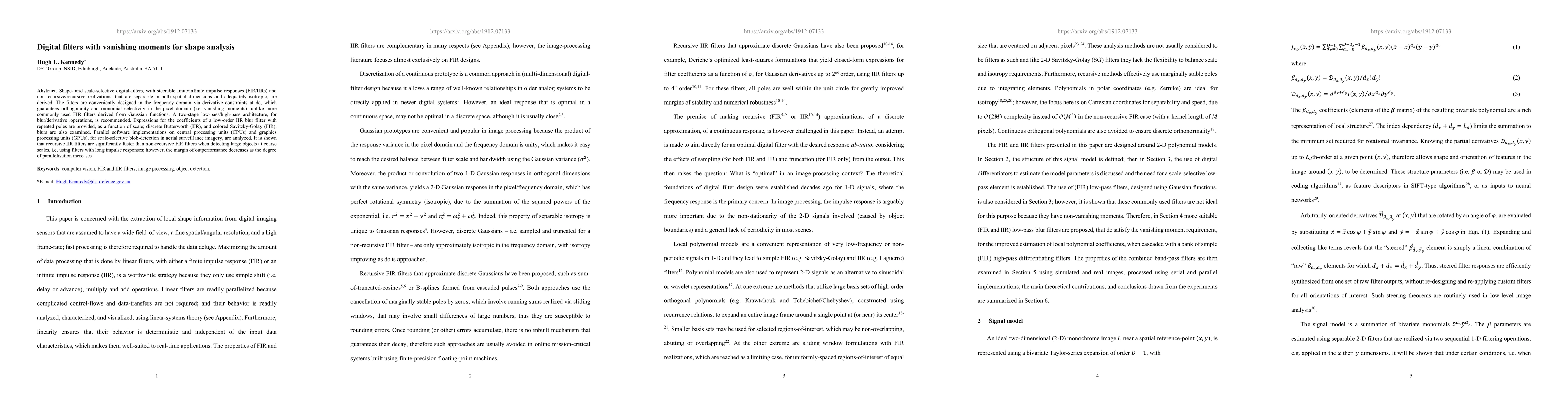 This paper develops shape- and scale-selective digital filters with vanishing moments for shape analysis, emphasizing recursive IIR filters over non-recursive FIR filters for speed in detecting large objects in aerial surveillance imagery. Performance comparisons highlight the efficiency gains of IIR filters, though parallelization diminishes this advantage.