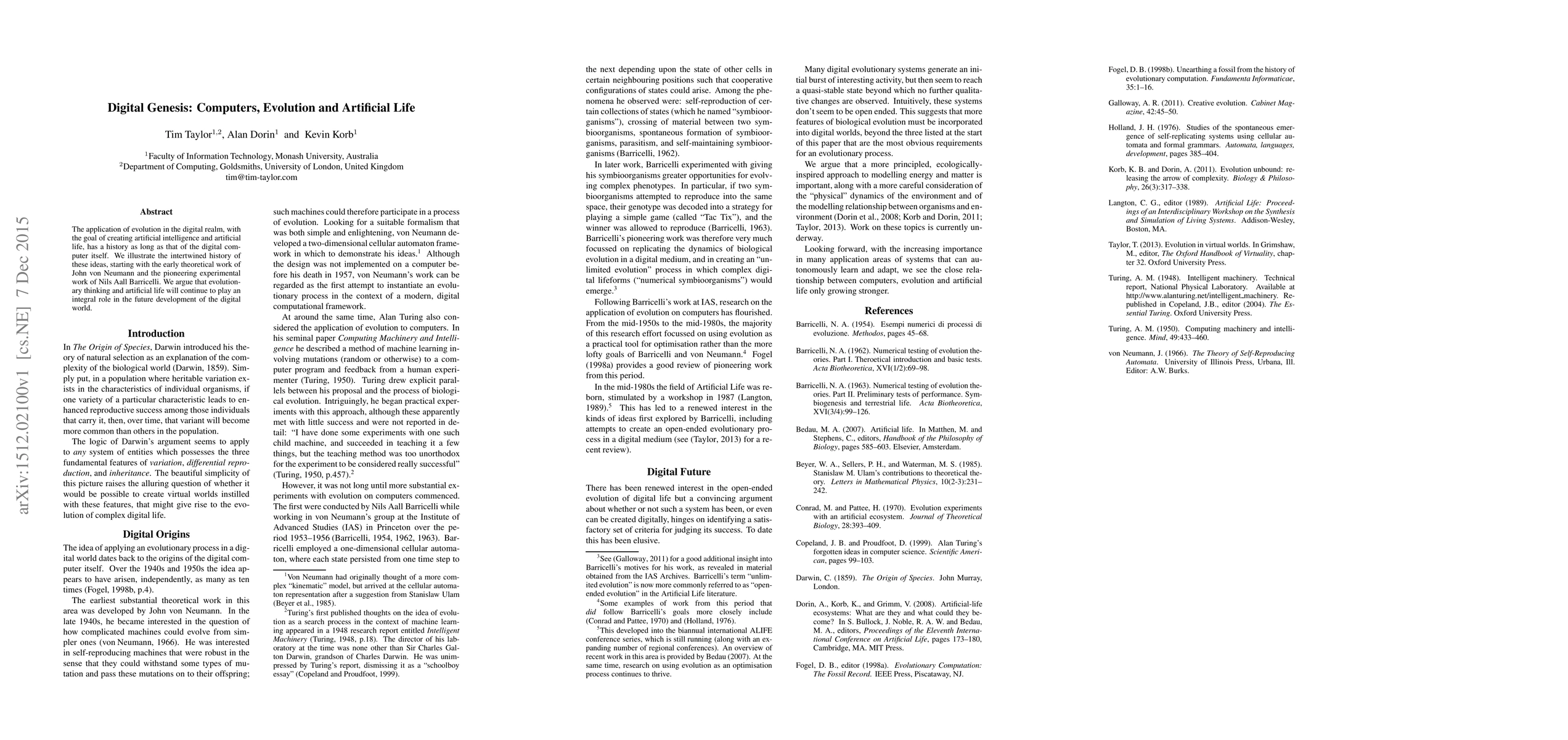 This paper explores the historical integration of evolutionary principles in the development of computers and artificial intelligence, tracing its roots from John von Neumann and Nils Aall Barricelli. It emphasizes the ongoing significance of evolutionary thinking and artificial life in shaping the future of digital technology.