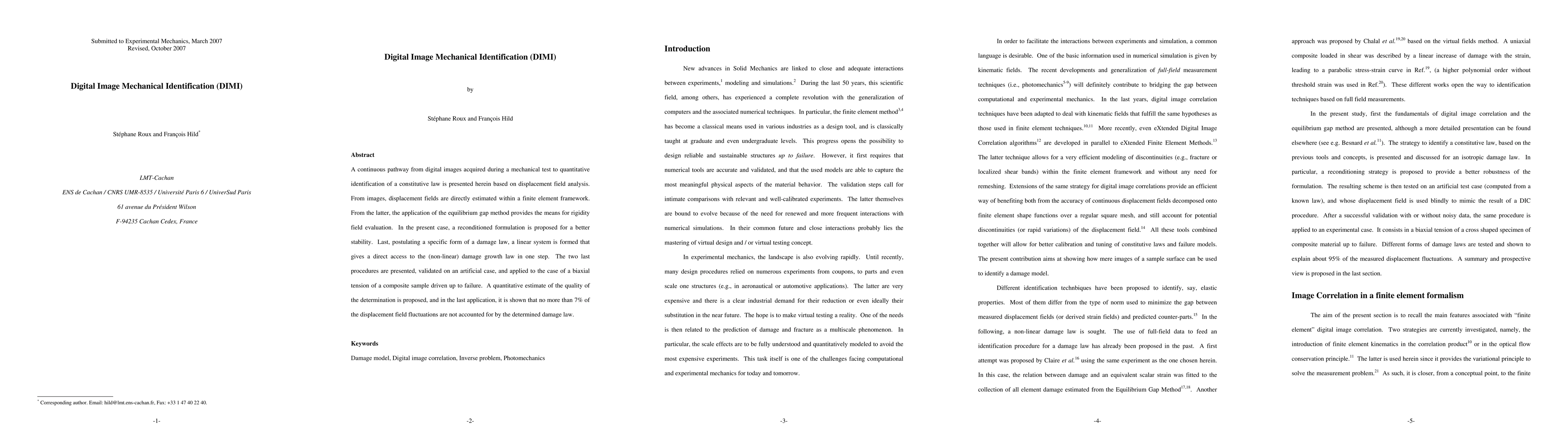 A new method, Digital Image Mechanical Identification (DIMI), estimates a constitutive law from displacement field analysis of digital images acquired during mechanical testing with high accuracy. The method provides a direct link to determine the damage growth law in one step.