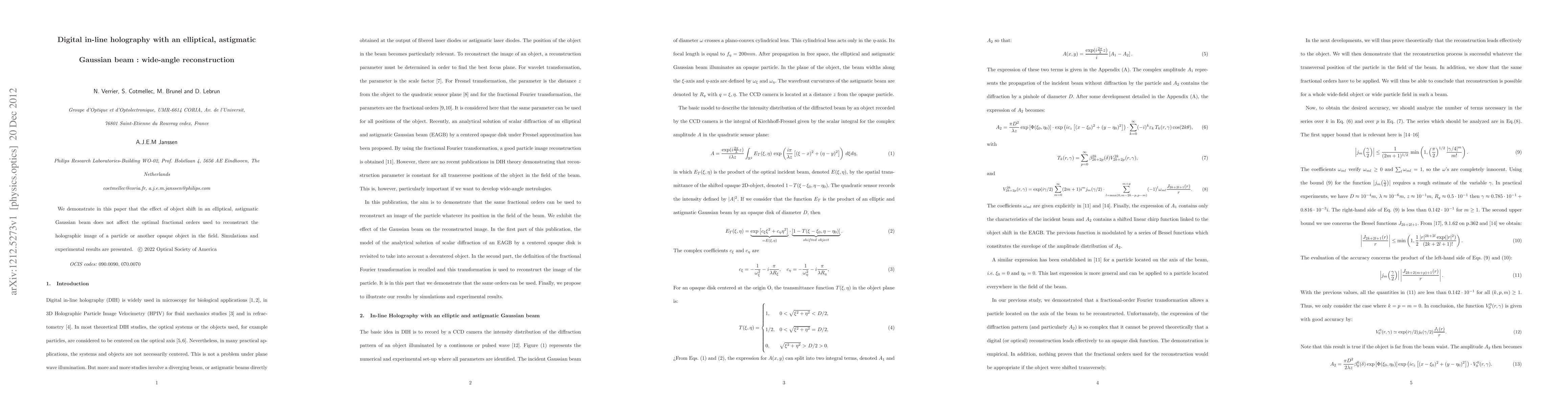 We demonstrate in this paper that the effect of object shift in an elliptical, astigmatic Gaussian beam does not affect the optimal fractional orders used to reconstruct the holographic image of a particle or another opaque object in the field. Simulations and experimental results are presented.