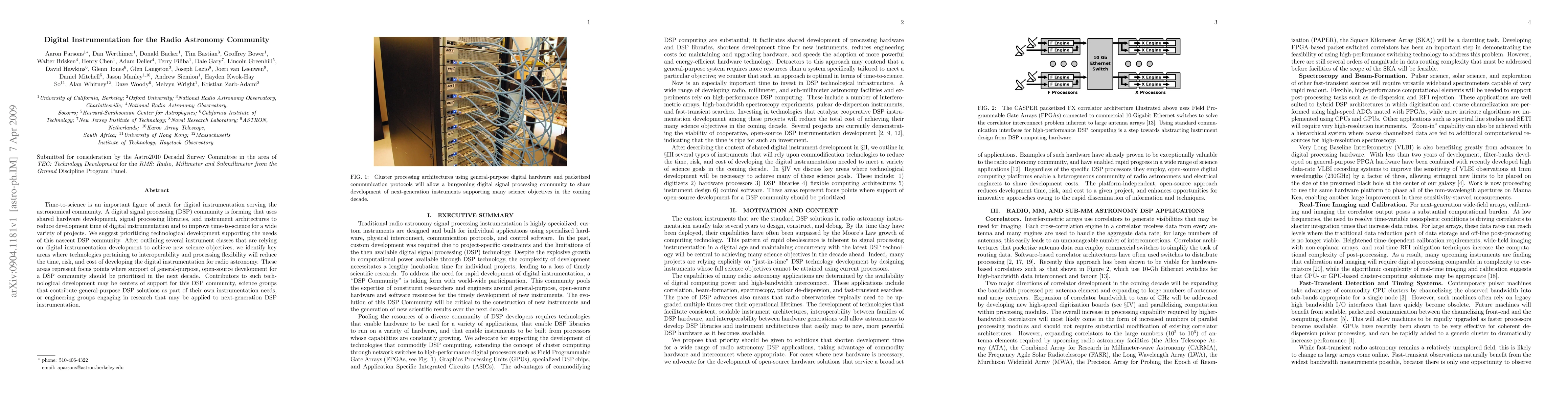 This paper discusses the importance of reducing time-to-science for digital instrumentation in radio astronomy and highlights the emerging digital signal processing (DSP) community. It identifies key technological areas for interoperability and processing flexibility to lower development costs and risks, suggesting that support for open-source DSP solutions should be prioritized to meet the needs of this community.