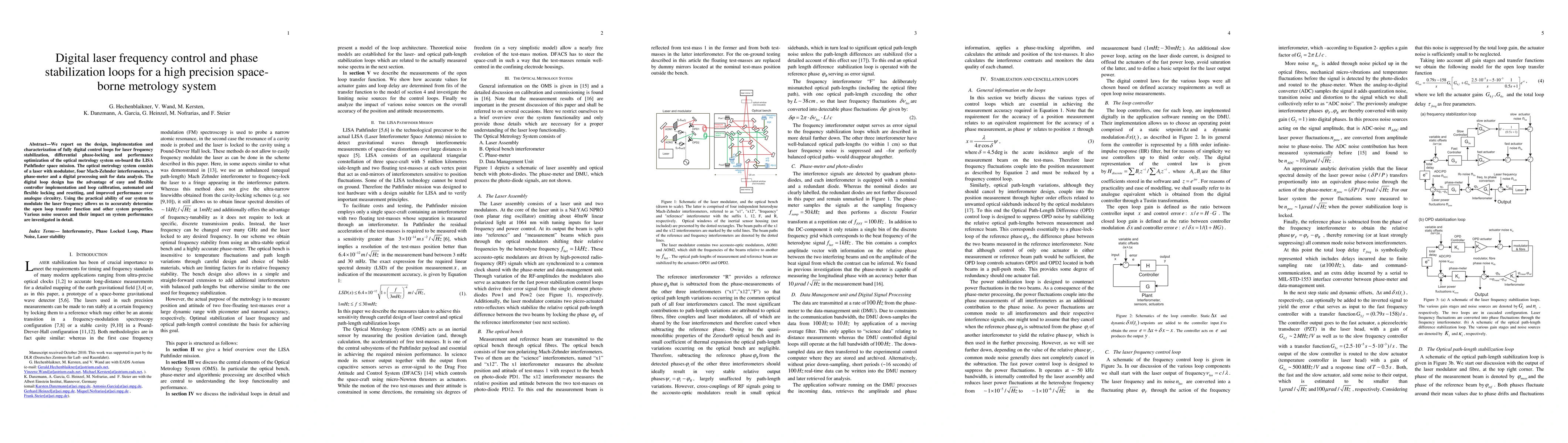 This paper details the design and implementation of fully digital control loops for laser frequency stabilization and phase-locking in a high-precision space-borne metrology system on the LISA Pathfinder mission. The digital approach offers advantages in flexibility, calibration, and performance over analogue systems.