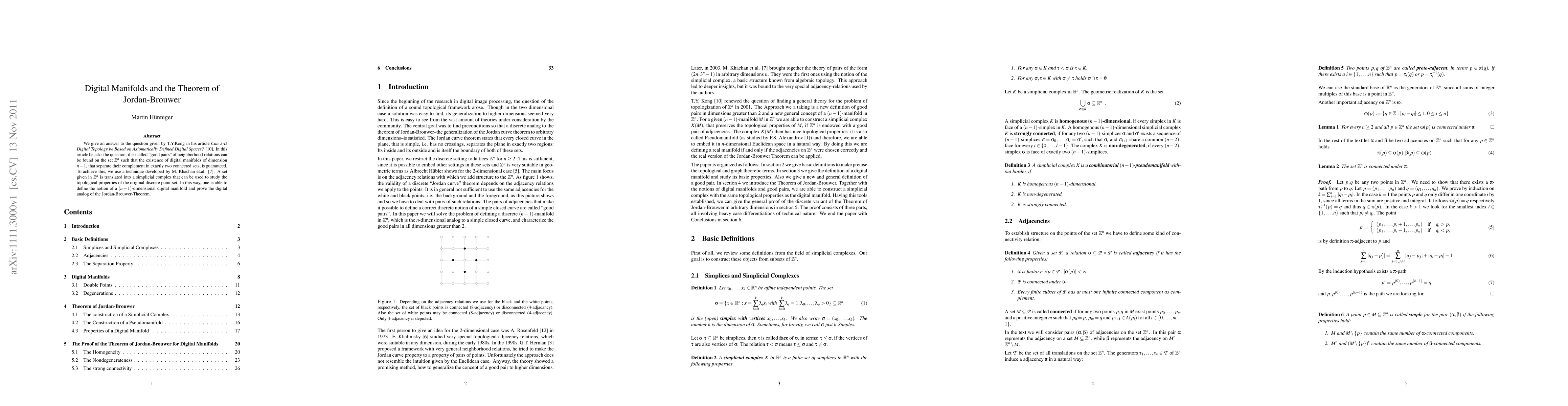 We give an answer to the question given by T.Y.Kong in his article "Can 3-D Digital Topology be Based on Axiomatically Defined Digital Spaces?" In this article he asks the question, if so called "good pairs" of neighborhood relations can be found on the set Z^n such that the existence of digital manifolds of dimension n-1, that separate their complement in exactly two connected sets, is guaranteed. To achieve this, we use a technique developed by M. Khachan et.al. A set given in Z^n is translated into a simplicial complex that can be used to study the topological properties of the original discrete point-set. In this way, one is able to define the notion of a (n-1)-dimensional digital manifold and prove the digital analog of the Jordan-Brouwer-Theorem.
