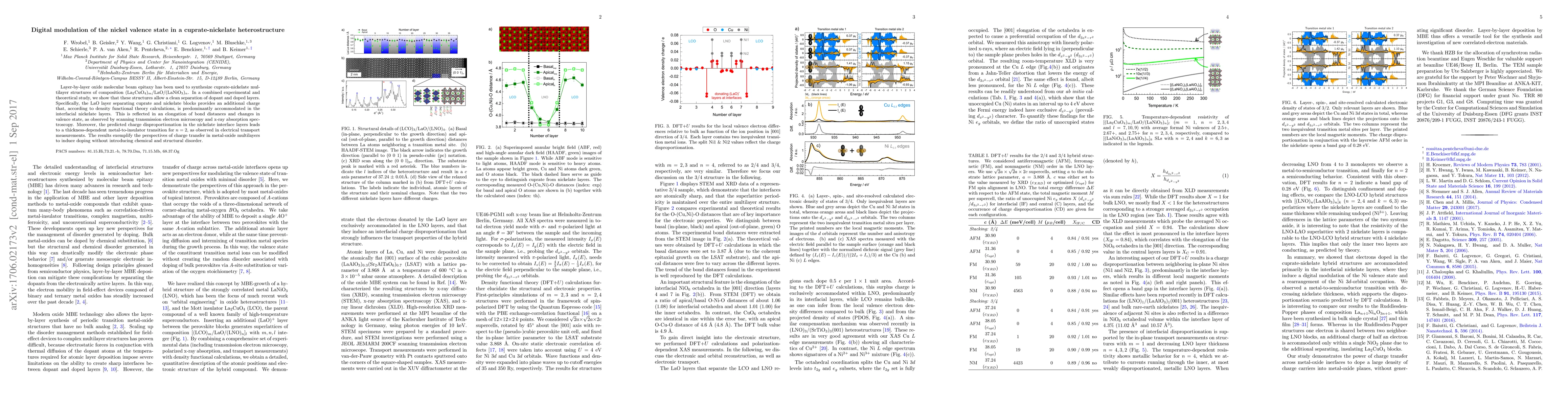 This study demonstrates the use of layer-by-layer oxide molecular beam epitaxy to create cuprate-nickelate heterostructures, showing that a LaO layer induces modulation of the nickel valence state without structural disorder. The results reveal a thickness-dependent metal-to-insulator transition, highlighting the potential of charge transfer in metal-oxide multilayers for doping.