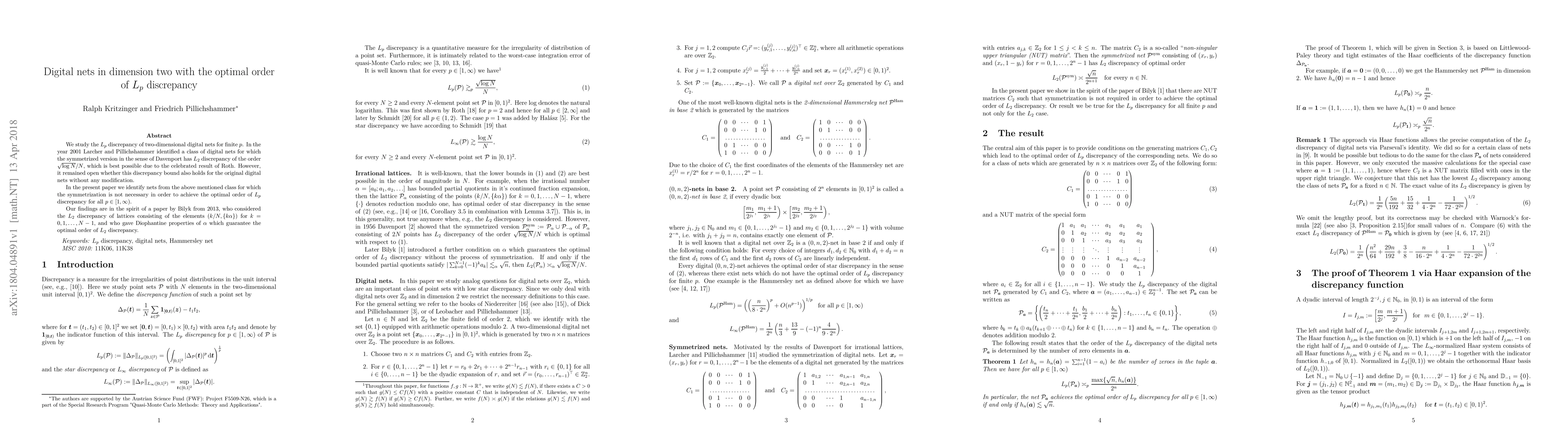This paper investigates the $L_p$ discrepancy of two-dimensional digital nets, identifying a class of nets that achieve the optimal discrepancy order $\sqrt{\log N}/N$ without requiring symmetrization, thus extending previous results that only applied to symmetrized versions.