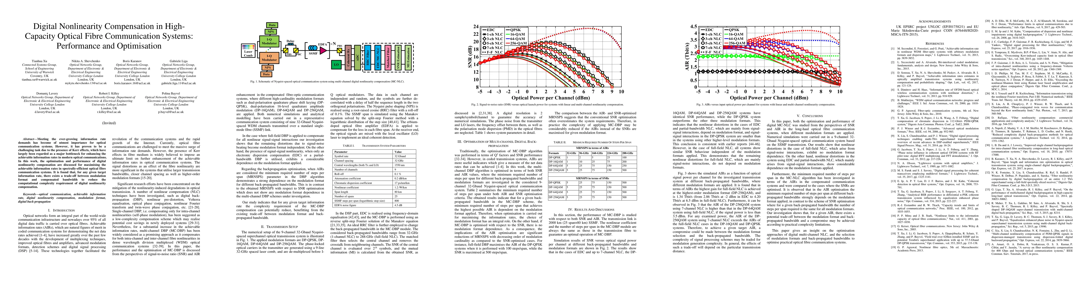 This paper investigates digital nonlinearity compensation techniques to enhance the information rates in high-capacity optical fibre communication systems, addressing the challenges posed by Kerr effects. The study finds a trade-off between modulation format and compensated bandwidth to optimize computational complexity.