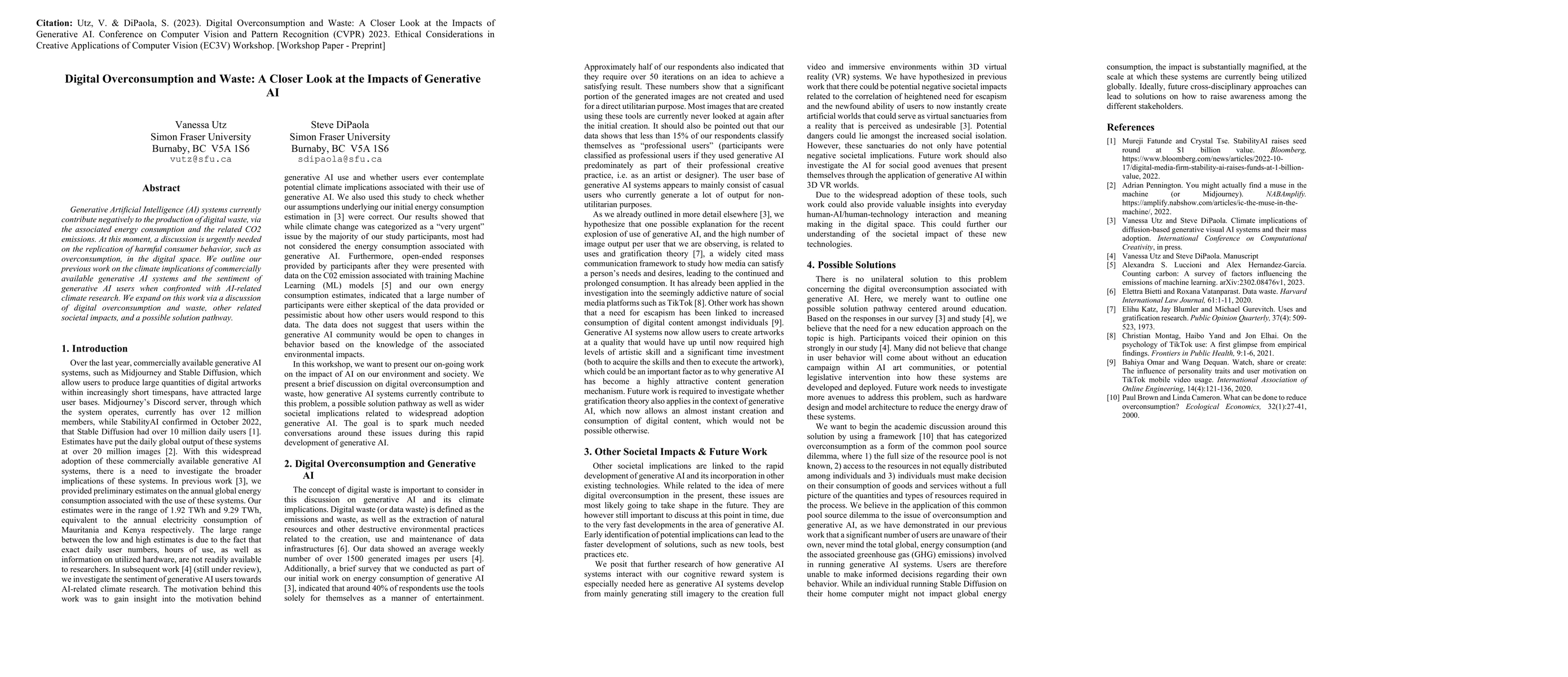 Generative Artificial Intelligence (AI) systems currently contribute negatively to the production of digital waste, via the associated energy consumption and the related CO2 emissions. At this moment, a discussion is urgently needed on the replication of harmful consumer behavior, such as overconsumption, in the digital space. We outline our previous work on the climate implications of commercially available generative AI systems and the sentiment of generative AI users when confronted with AI-related climate research. We expand on this work via a discussion of digital overconsumption and waste, other related societal impacts, and a possible solution pathway