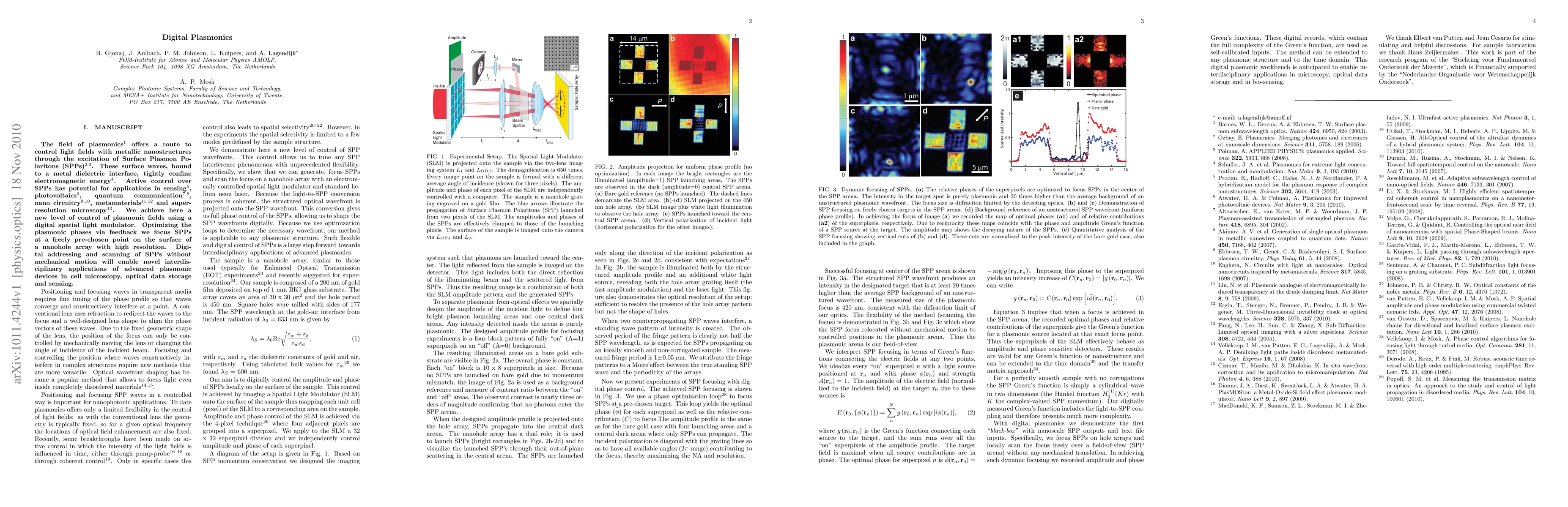 This research introduces digital plasmonics, using a spatial light modulator to precisely control Surface Plasmon Polaritons (SPPs) on metal-dielectric interfaces. This method allows for high-resolution focusing of SPPs at chosen points on nanohole arrays, opening avenues for innovative applications in microscopy, data storage, and sensing.