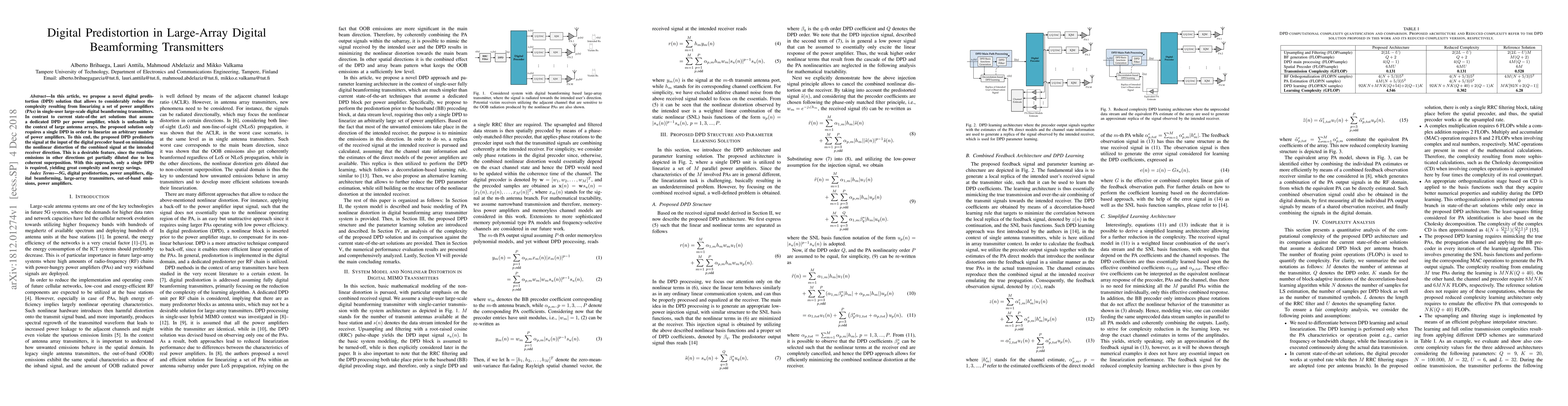 This paper proposes a novel digital predistortion (DPD) solution to reduce complexity in large-array digital beamforming transmitters by linearizing multiple power amplifiers with a single DPD, optimizing signal transmission towards the intended receiver and minimizing unwanted emissions.
