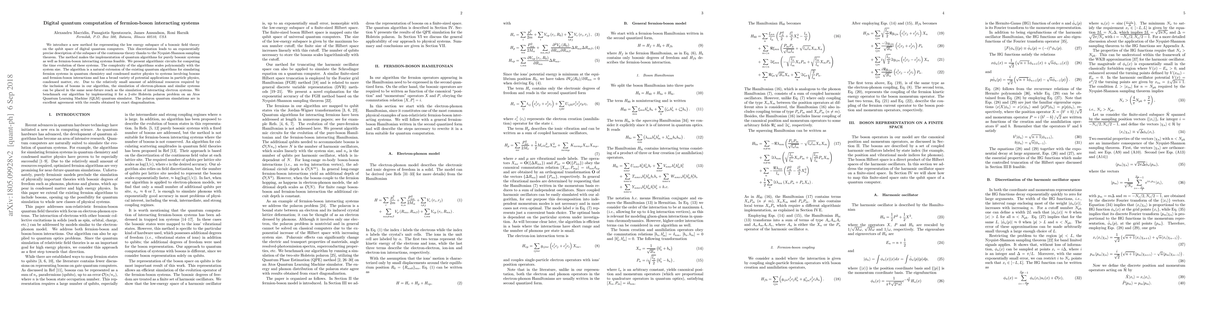 This paper introduces a novel method to represent bosonic field theories on digital quantum computers, enabling precise simulation of fermion-boson interactions with polynomial algorithmic complexity. The method extends existing quantum algorithms for fermion systems, making simulations of electron-phonon systems feasible with near-future quantum technology.