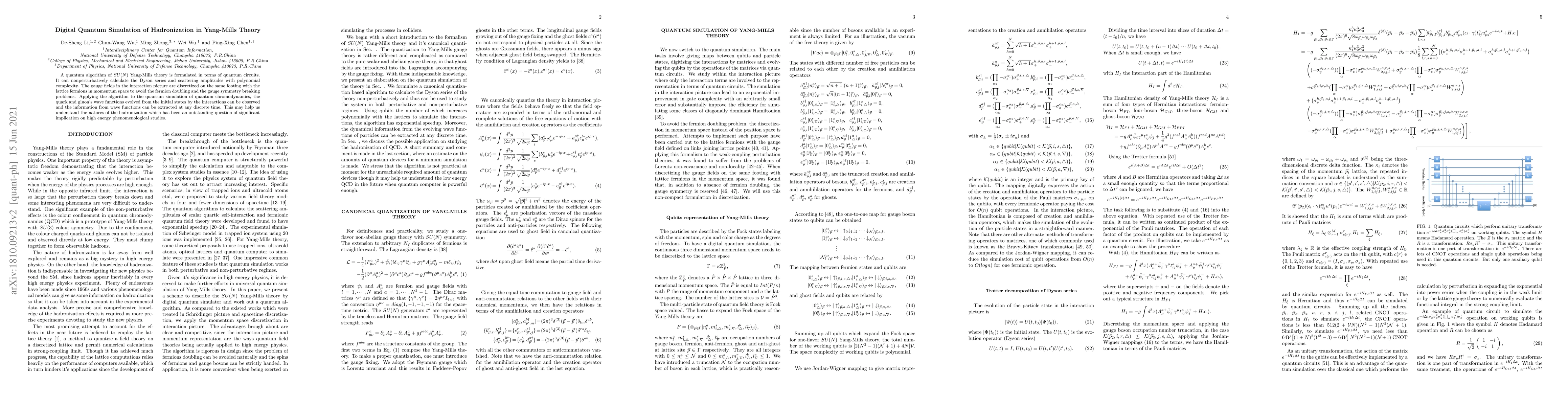 A quantum algorithm of SU(N) Yang-Mills theory is formulated in terms of quantum circuits. It can nonperturbatively calculate the Dyson series and scattering amplitudes with polynomial complexity. The gauge fields in the interaction picture are discretized on the same footing with the lattice fermions in momentum space to avoid the fermion doubling and the gauge symmetry breaking problems. Applying the algorithm to the quantum simulation of quantum chromodynamics, the quark and gluon's wave functions evolved from the initial states by the interactions can be observed and the information from wave functions can be extracted at any discrete time. This may help us understand the natures of the hadronization which has been an outstanding question of significant implication on high energy phenomenological studies.
